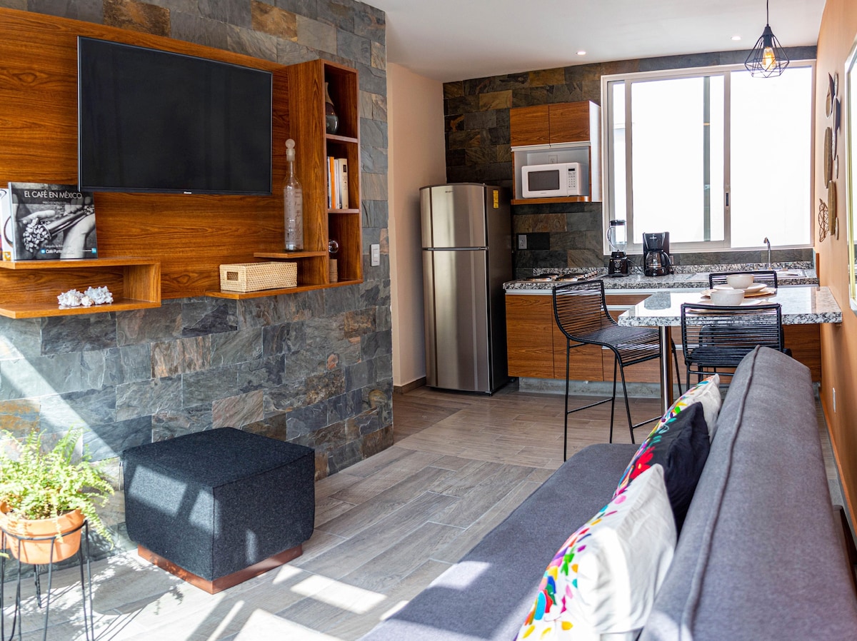 Beautiful and new apartment very close to the historic center of Mexico City. The apartment has a spacious bedroom (king size bed) full bathroom, smart TV in the bedroom and in the living area. The sofa in the living room can be converted into a sofa bed, small in size, perfect for a child. It has a fully equipped kitchen with high-end appliances. The building offers luxurious amenities: a swimming pool, a gym, a workspace area, incredible terraces for you to enjoy panoramic views of the city