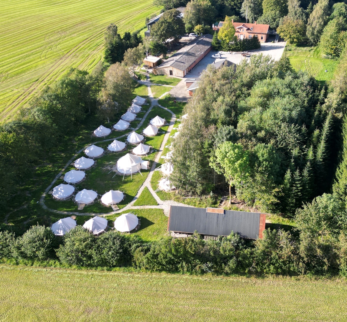 Du vil elske denne unikke og romantiske overnatning. - adgang til køkken med gaskomfur, toiletter og bad - udebruser med koldt/varmt vand - bålhytte - brændepakke kan tilkøbes - to hyggerum med brændeovn og 75 '' tv i det ene rum - udelounge område - adgang til welnessområde med sauna og vildmarkskar kan tilkøbes - overnatningsformen minder om et vandrehjem med flere gæster - dette er et roligt sted i nature