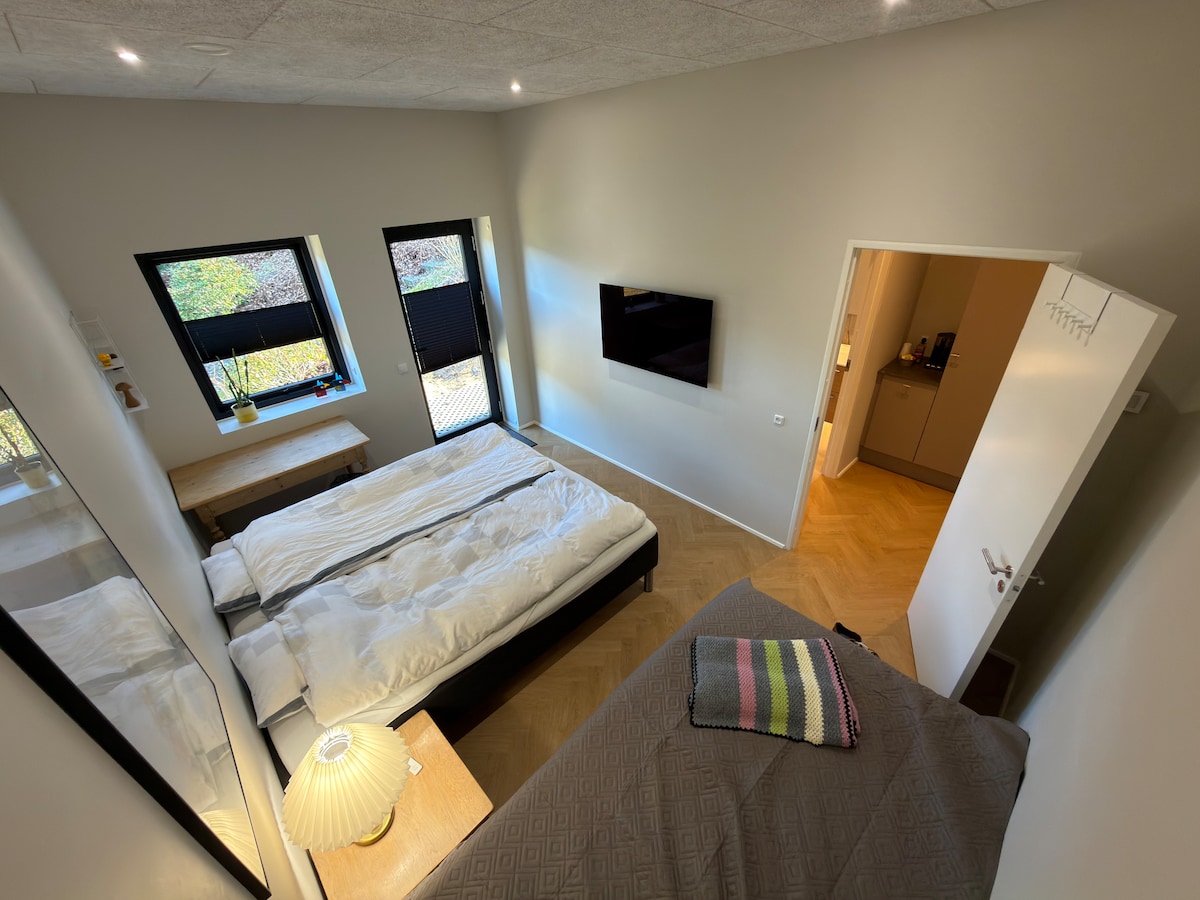 Bright and newly renovated 24 sqm apartment in a quiet area with a view over Grenaa town. It is a 7-minute walk to the center of Grenaa. The tea kitchen can be used for light dishes. The apartment is connected to our house, which has its own entrance to the apartment and its own bathroom. The distance to Grenaa beach is 5.8 km, Djurs Sommerland is only 22 km away from Grenaa.