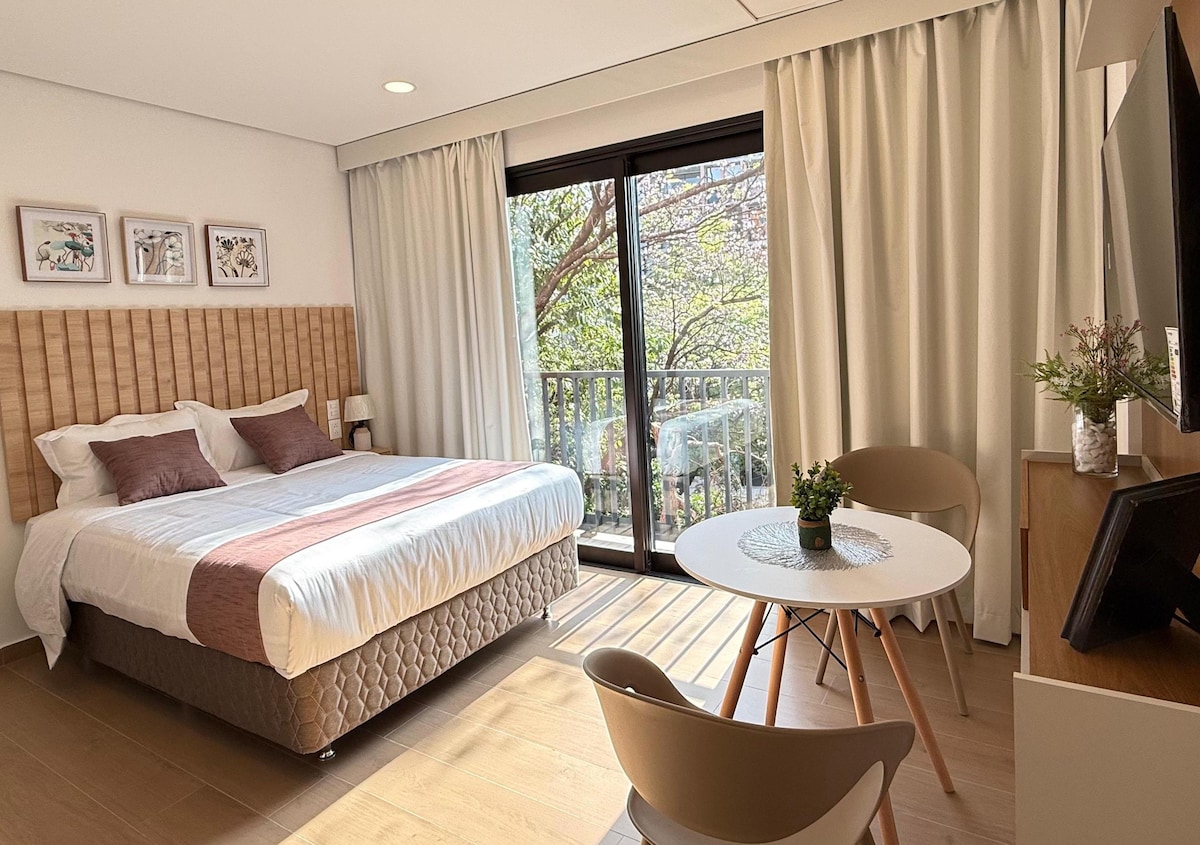Discover the charm of Recoleta from our fith-floor one-bedroom apartment with breathtaking panoramic views. Located in one of Asuncion's top neighborhoods, this area is known for its safety and vibrant restaurant scene. Just 500 meters from Shopping Mariscal and Villamorra, you'll have the best shopping and dining options nearby. The building is new and designed with Airbnb guests in mind, offering 24-hour service, a swimming pool, gym, and a terrace grill area for up to 12 people.