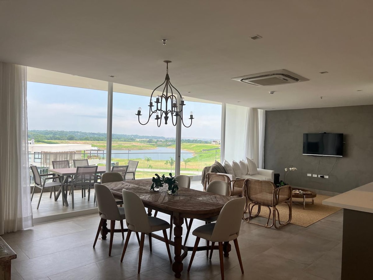 Welcome to Aqua Dpto, your perfect family retreat in Aqua Village, San Bernardino — a private, resort-style community built around a crystal-clear lagoon. This bright and cozy apartment offers panoramic water views, modern comfort, and all the small touches that make a stay unforgettable. Relax on the private terrace with BBQ, share family meals with a lagoon backdrop, and step right into the beach area just an elevator ride away. Every detail is designed for ease, connection, and rest.