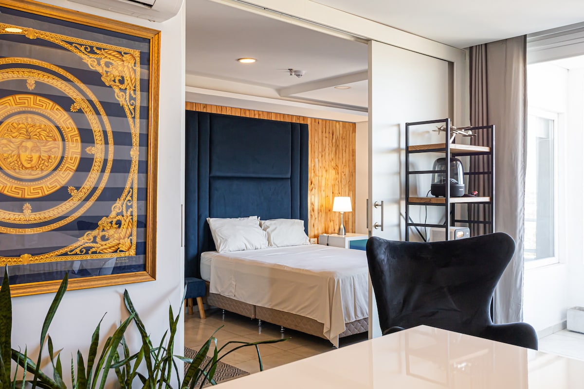 Modern studio apartment in the Los Laureles neighborhood of Asunción. Ideal for couples' getaways or work stays, this space has a comfortable bed and a sofa bed, perfect for accommodating up to 3 people. Enjoy the building's incredible amenities: swimming pool, barbecue area, cinema and a mechanized garage. Privileged location, close to everything you need for a stay in Asunción.