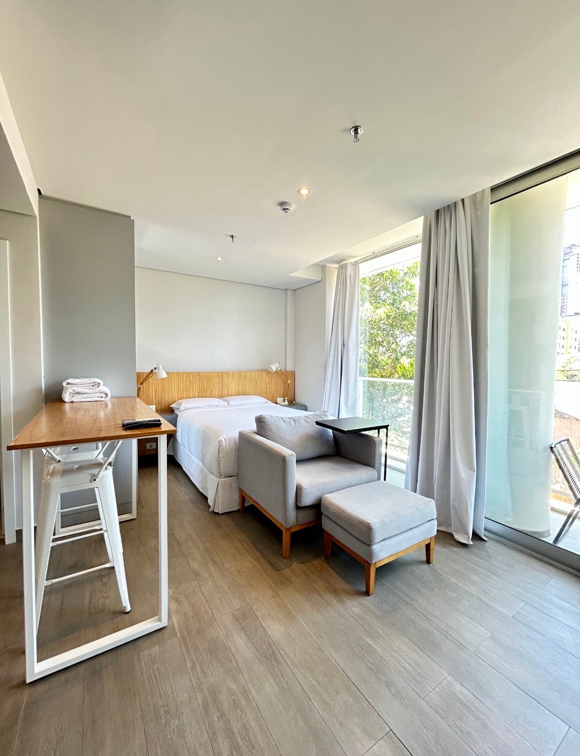 🏙️ Moderno studio detrás del Shopping del Sol, en el eje corporativo más importante de Asunción. 👔 Ideal para estadías ejecutivas o escapadas urbanas. 🛏️ Cama Queen Size 🌙 Cortinas estilo hotel blackout, donde no pasa la luz del día, ideales para las personas que trabajan de noche y descansan de día. 👩💻Acceso libre a la terraza, coworking y sala de reuniones del edificio. 🍽️ Cocina equipada 🍖 Quincho social con costo adicional, a coordinar con recepción. 🛡️ Seguridad 24 h.