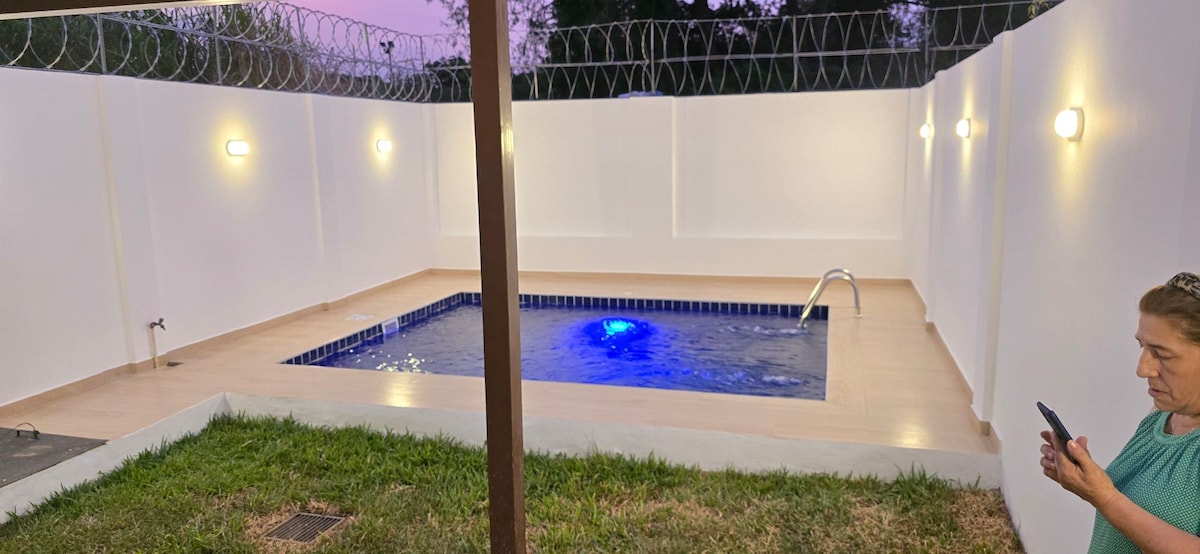 Nuestra casita es sencilla, acogedora y cuenta con todo lo necesario para compartir en familia, especialmente en los días de mucho calor: todos los espacios están climatizados. Es Ideal para tirar algo a la parilla y “ piletear” como decimos en Paraguay a pasar el tiempo en la piscina. A 2km del centro de Aregua, la casa te ofrece tranquilidad y comodidad para refrescarte y descansar.
