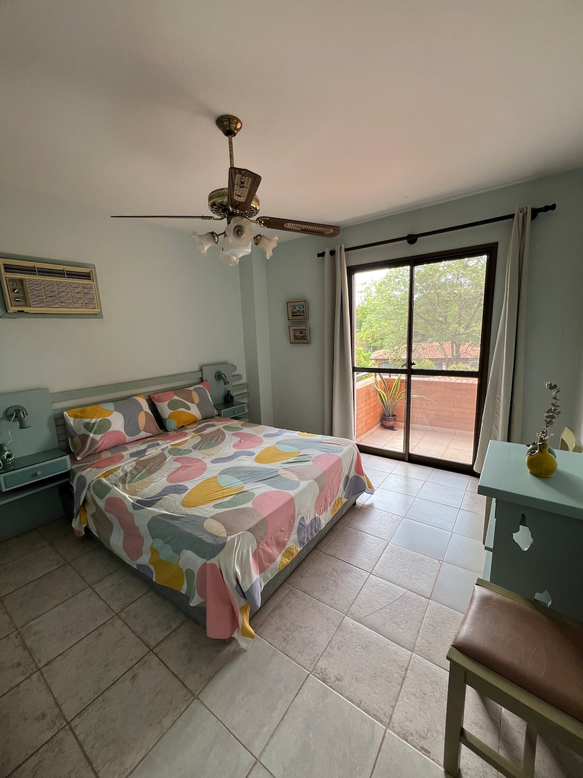 Welcome to your place in Asuncion. The apartment has a beautiful view from the balcony, to the city, the Paraguay river and the prime minister's palace. It has a comfy double bed (160cm, most places have just 140cm), a shower with handheld showerhead (most places have just overhead mounted showers) and a fully equipped cozy kitchen (most places just don't have a welcoming one), with a warm, artsy atmosphere. A good place to relax, spend quality time as couple, work or just explore the city.