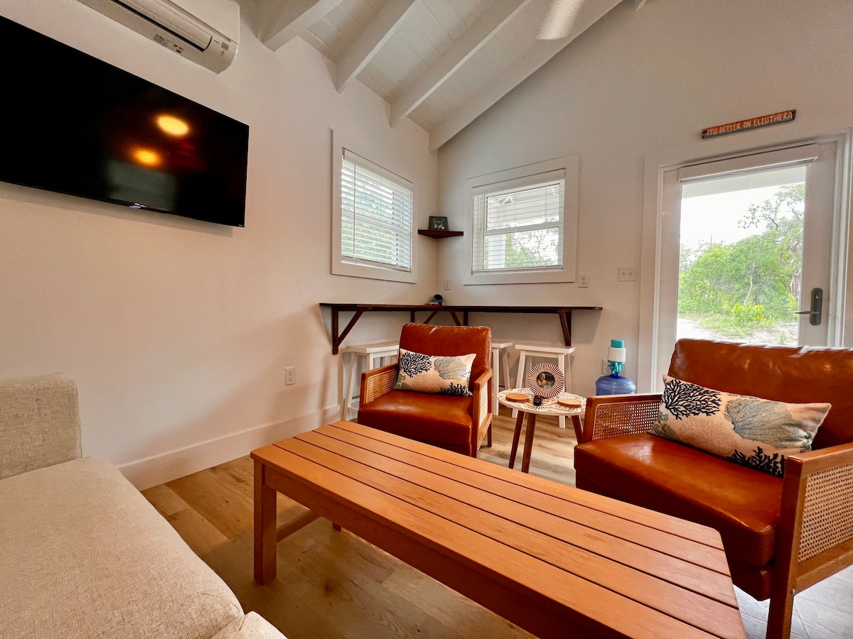 Recently remodeled, this cottage is fresh and chic. Walk for miles on the white sand beach, dream in the hammock in the shade of a palm tree, then sip your cocktail on the fully-screened deck. Grill your fresh catch outside or let your creative juices flow in the well-appointed kitchen. Then explore all that Eleuthera has to offer from this central location. RD (2B/2B) can be rented by itself for up to 4 people, or *with Morning Glory (next door) to sleep up to 10* (separate listing).