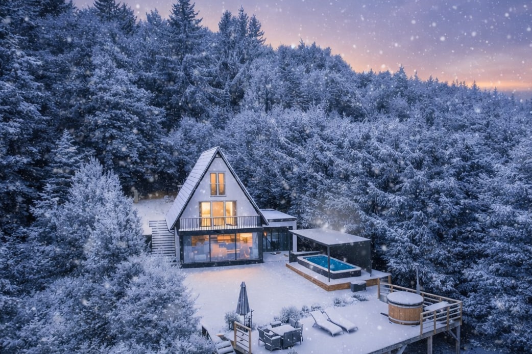 带热水浴缸和芬兰桑拿的浪漫小木屋