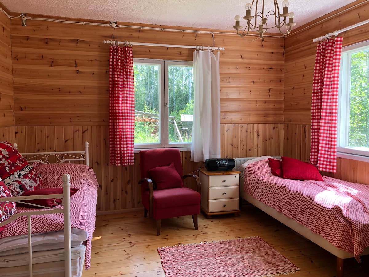 Kaunisto is a romantic cottage in the countryside, close to a national park. The cottage has one room and a kitchen. The kitchen is equipped with running water, a dishwasher and a fridge-freezer. The toilet is a composting outdoor toilet. The washing facilities are in the outdoor sauna, the sauna has a shower. Additional guests can sleep in an authentic log cabin. Don’t expect luxury but feel peace of mind. Public beach is just 300 m away and there is also a rowing boat for free use.