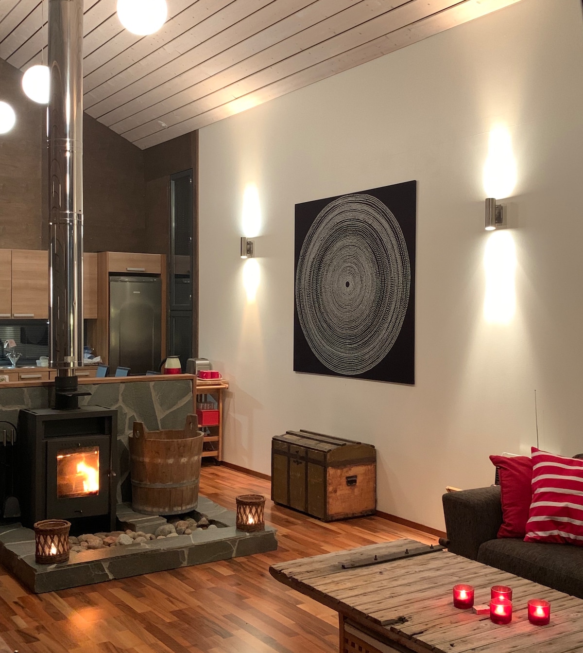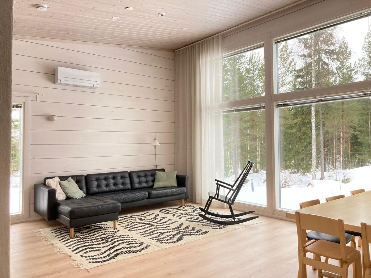 Unique vacation villa near Himos slopes with a view of the northern slope. 5 minutes by car to the slope. Well-maintained winter trails pass by the villa, with multiple pairs of snowshoes free to use. Outdoor hot tub (jacuzzi) can be rented for 160€/stay. Note: If you want bed linens and towels, they can be rented separately for 20 euros per person. This is a common practice for holiday cottages in Finland.
