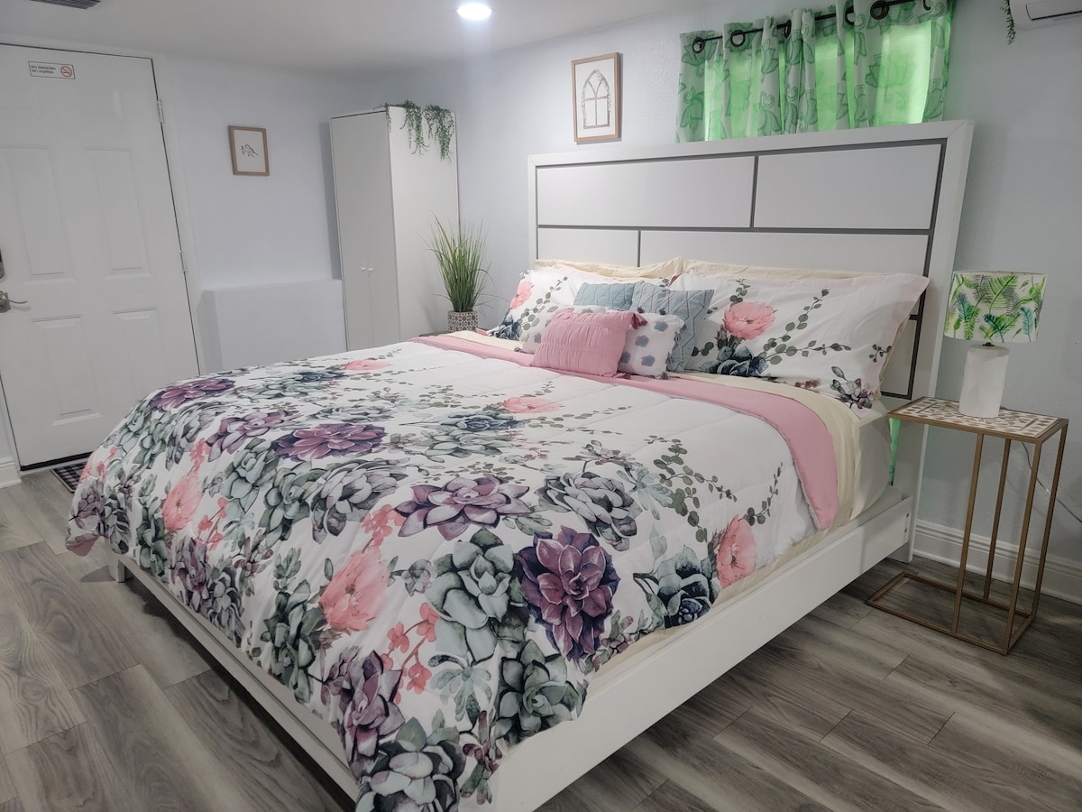 We welcome you to our home in orlando near everything, where we hope you enjoy your stay. Distances near us: Orlando airport 8.5 mi High-Speed train station 6 m Universal Studios Orlando/ City walk 12 mi SeaWorld 14 Mi all disney parks are from 16 to 21 mi The space Private space with independent entrance. An elegant room with an accent chair, Microwave, Mini Fridge, Bathroom with walk-in shower, with a king bed, TV and, wifi. Guest access parking space on the driveway in front of the room