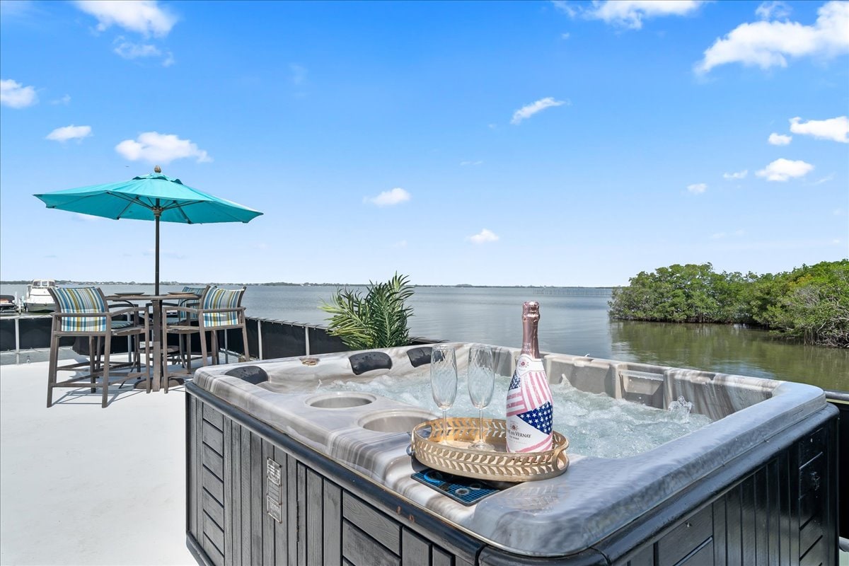 Your unique vacation is about to begin! Enjoy morning coffee, off the stern or wine in the evening while watching nature, dolphins and the myriad of boats pass by. Located in a secure spot in the marina with direct waterfront view and minimal boat movement from the protection of the slip. You are on the Indian River lagoon between the Indian River (Intercoastal waterway) and the Banana River. Space Coast rocket launches are amazing on the rooftop deck!