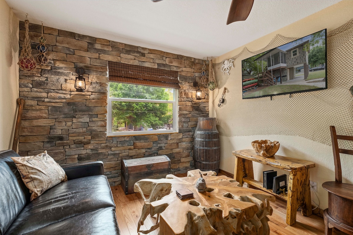 Do you love to play in nature but still have our creature comforts? This A frame in the Ocala National Forest is the spot. There are 2 springs both 5 minutes from the house, Salt Springs & Silver Glen Springs. Beautiful Juniper Springs, Silver Springs and Alexander Springs are all a hop, skip, and jump away. Bring your fishing poles and mosey down to the boathouse and try your luck fishing right in the backyard at the canal.