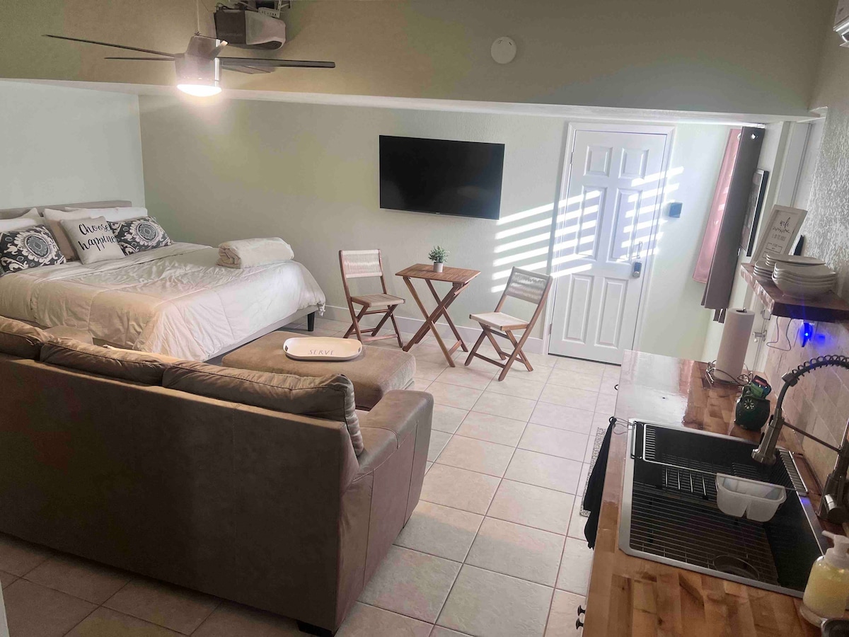 Kick back & relax in this calm, central and stylish space. Location,Location centrally located within 8 mins from Tampa's International Airport, 5 mins from Tampa's renowned Riverwalk and Downtown Tampa & Armature Works, 5 mins from Raymond James Stadium. Our goal is to provide our guests with a clean, safe, comfortable space they can call home while visiting our exciting city. Our newly renovated Apt includes a queen size bed, kitchen, full bath, wifi, private entrance & off street parking.