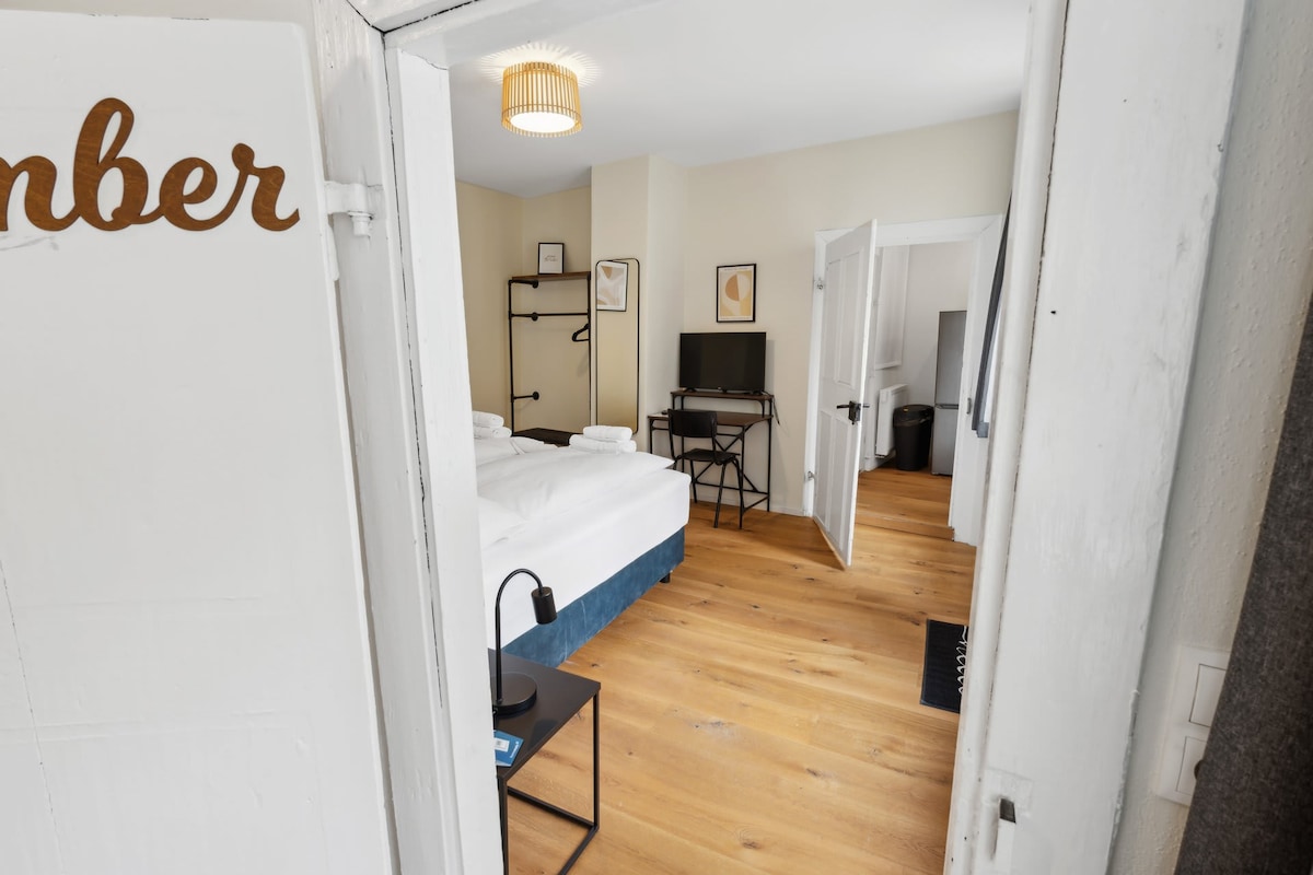 ❤ SUPERHOST apartment with 3 bedrooms, 2 bathrooms. Give us a ❤ Save us on your personal wishlist! ❤ Easy check-in with access code - no key required! Box-spring beds incl. bed linen, towels, shampoo, fully equipped kitchen, washing machine, tumble dryer, high-speed WiFi, HD TV, high chair & baby cot ... Cleanliness & hygiene are very important to us. Professional or private? Family or colleagues? We are happy to issue an invoice with VAT. Powered by Rockchair GmbH.