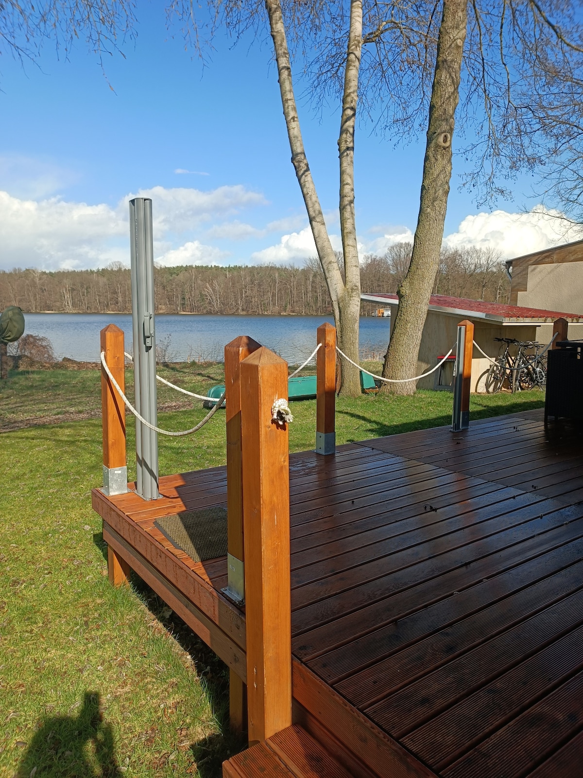 Das Ferienhäuschen hat 50qm Wohnfläche und 1000 qm Garten. Es liegt an der Lagune des Hainer Sees 20km südl. von Leipzig und hebt sich durch den älteren Hüttencharme von den restlichen neuen "Ferienwürfeln" ab. Statt üblichen Furniermöbeln von der Stange gibt es eine individuelle Einrichtung, schönen Blick auf den Bootssteg, Kaminofen, viele Sachen für Kinder und Obstgewächse zum Ernten. Es gibt alles, was man als kleine Familie für ein paar entspannte Tage abseits der Alltagshektik so braucht.