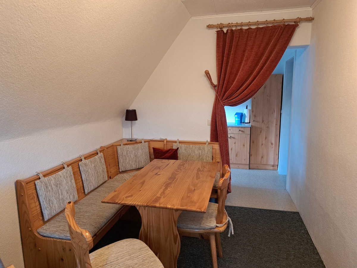 Welcome to the large maisonette apartment "Keilberg" over 2 levels on the 2nd floor for 2-8 people: Living level: living room with dining area, couch, satellite TV, from here 1 separate large bedroom with double box spring bed and sliding door wardrobe, separate kitchen fully equipped with ceramic hob, coffee machine, toaster, kettle, small dining area, bathroom with shower and toilet, cosmetic mirror and Hair dryer - Gallery: Stairs in the living area up to the open sleeping gallery with double box spring bed 1.60 mx 2.00 m and single box spring bed 0.90 mx 2.00 mm, built-in cupboard, from here with door separated Access to separate bedroom with double box spring bed 1.80mx 2.00m and single box spring bed 0.90mx 2.00m - Baby bed and high chair available - Bed linen and towels free of charge, change if necessary for longer stays - Dogs allowed after registration, we charge 8.00 euros per day - Terrace with grill in the basement at the house