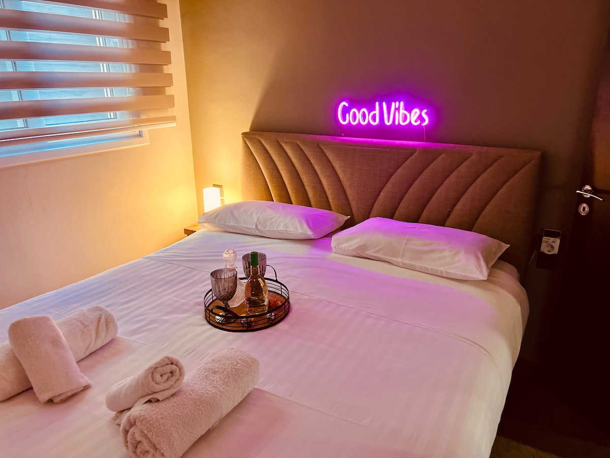 Enjoy a stylish experience at this centrally-located place, It is a modern smart home a breath away from Metro Station and Acropolis Museum in the heart of the major sights of the city. It has a cosy balcony to enjoy your coffee and read a book, a fully equipped kitchen to create your tasty food, a large Jacuzzi to relax, and a Home Cinema to watch your favourite movies