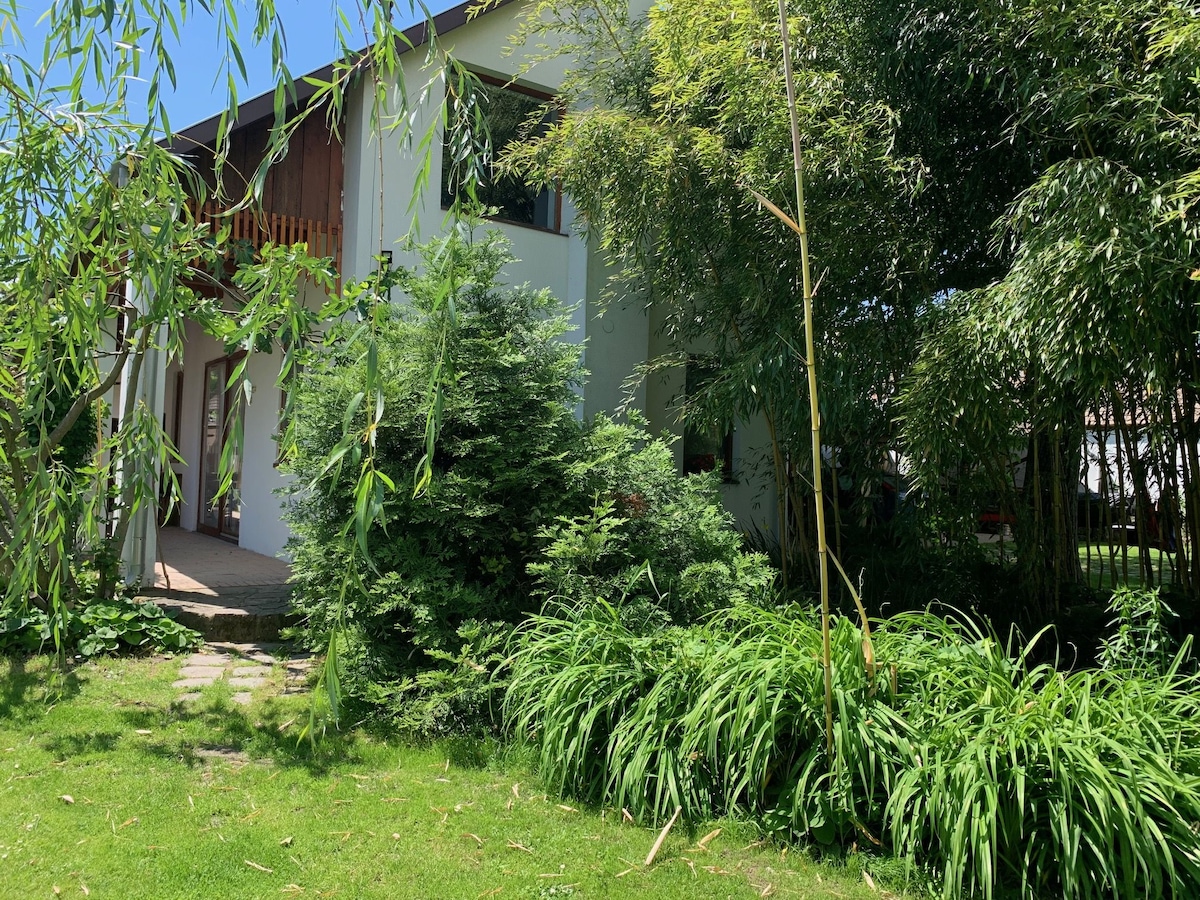 Dőlj hátra és lazíts a tóra néző fürdőkádban, vagy a jakuzzi-ban, csobbanjatok a medencében és sütögessetek az extra nagy grillen! Ha kiléptek a házból, csupán 50 m a park, a strand és a kikötő, ahonnan a sétahajók indulnak. Megfigyelhetitek a tó élővilágát a házhoz tartozó 3 személyes kenuval! Több étterem, wellness és gyógyfürdő található a környéken. Ajánljuk a tó körül 30 km-en kiépített bicikliutat! A közelben számos lehetőség van akár elektromos biciklit is bérelni!