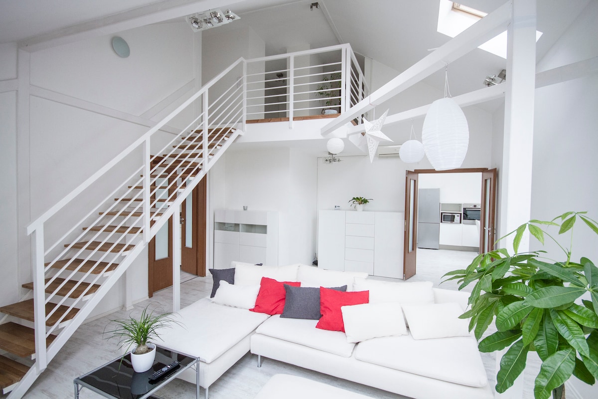 我们家中的Loft - 免费停车,城市景观