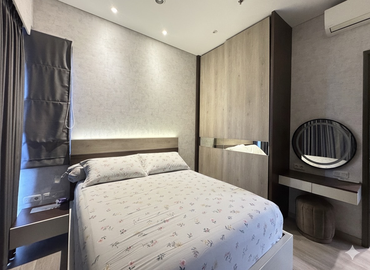 Welcome to the perfect blend of style, comfort, and convenience in our luxurious two-bedroom apartment located in the heart of BSD City. This modern two-bedroom apartment offers a peaceful retreat overlooking the lush botanical park and serene lake, perfect for couples, small families, digital nomads, and business travelers. Within minutes, you can reach The Breeze (Restaurant, lifestyle & entertainment), Green Office Park, AEON Mall, ICE, EKA Hospital, Grand Lucky, and more!