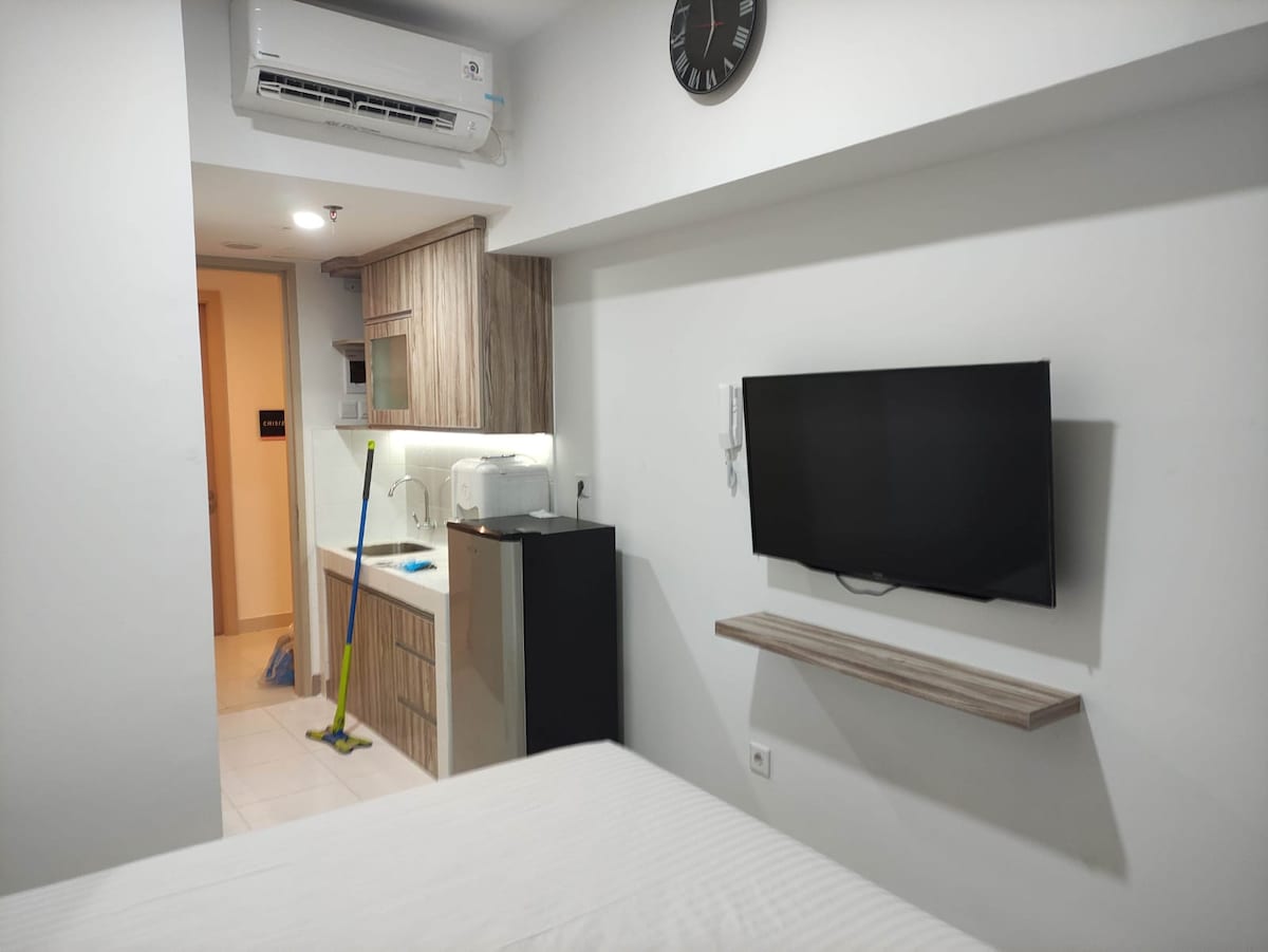 Studio apt located on 2nd floor of Breeze, stylish, comfy, with nice kitchen & very clean. Good choice for people who hate/afraid to stay on high floor. Walking distance to Bintaro Plaza, Farmer Market & resto to spend your days. The area is convenient to do morning Jogging. Else, you can spend the entire day with NETFLIX with our 50" Ultra HD TV. This is a family apartment, not for non married couple. Pls note that there is construction nearby (the developer is building another unit of apt)