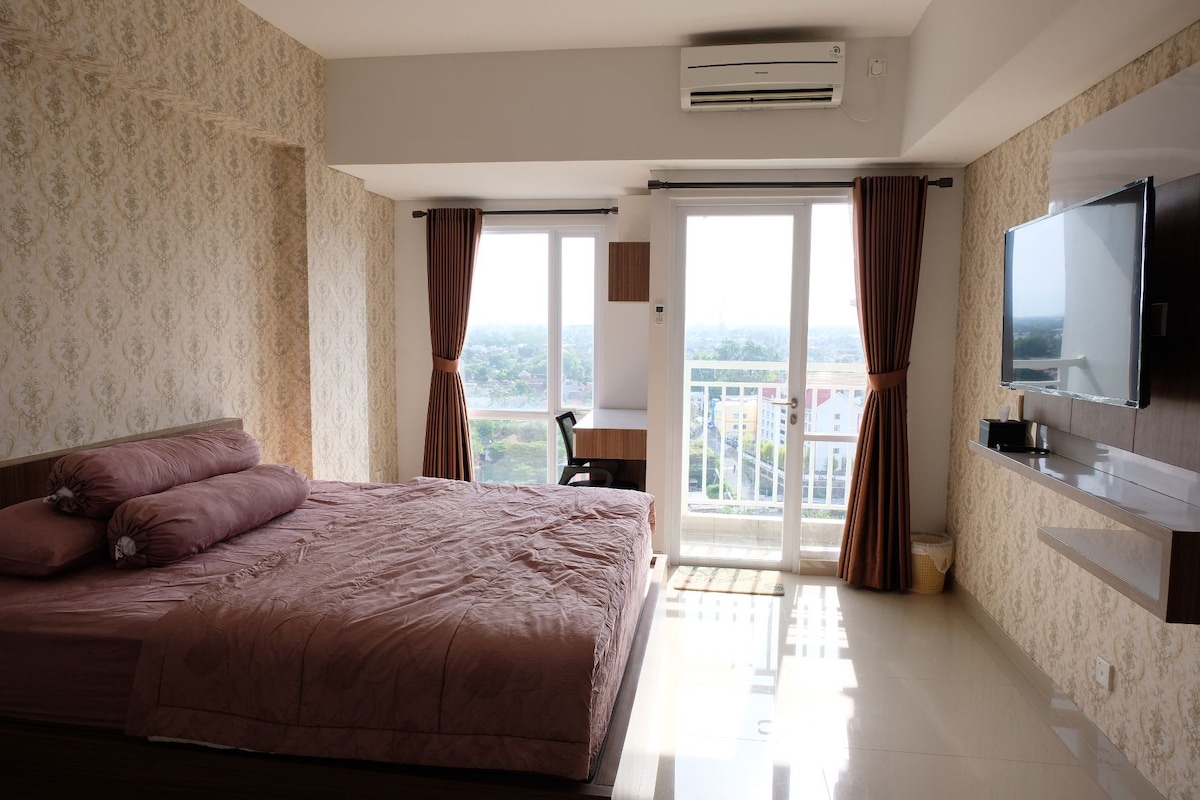 A cozy decorated Studio Room 24sqm apartment in the heart of Yogyakarta. The location is close to Gadjah Mada University. The best place to stay with an affordable price! What we have: 2 in 1 bed 43" SMART TV (Netflix) WIFI up to 20Mbps Hot water shower 24/7 Security Restaurants, laundry, supermarkets The well-equipped kitchen and complete amenities Gym, swimming pool and Common Space