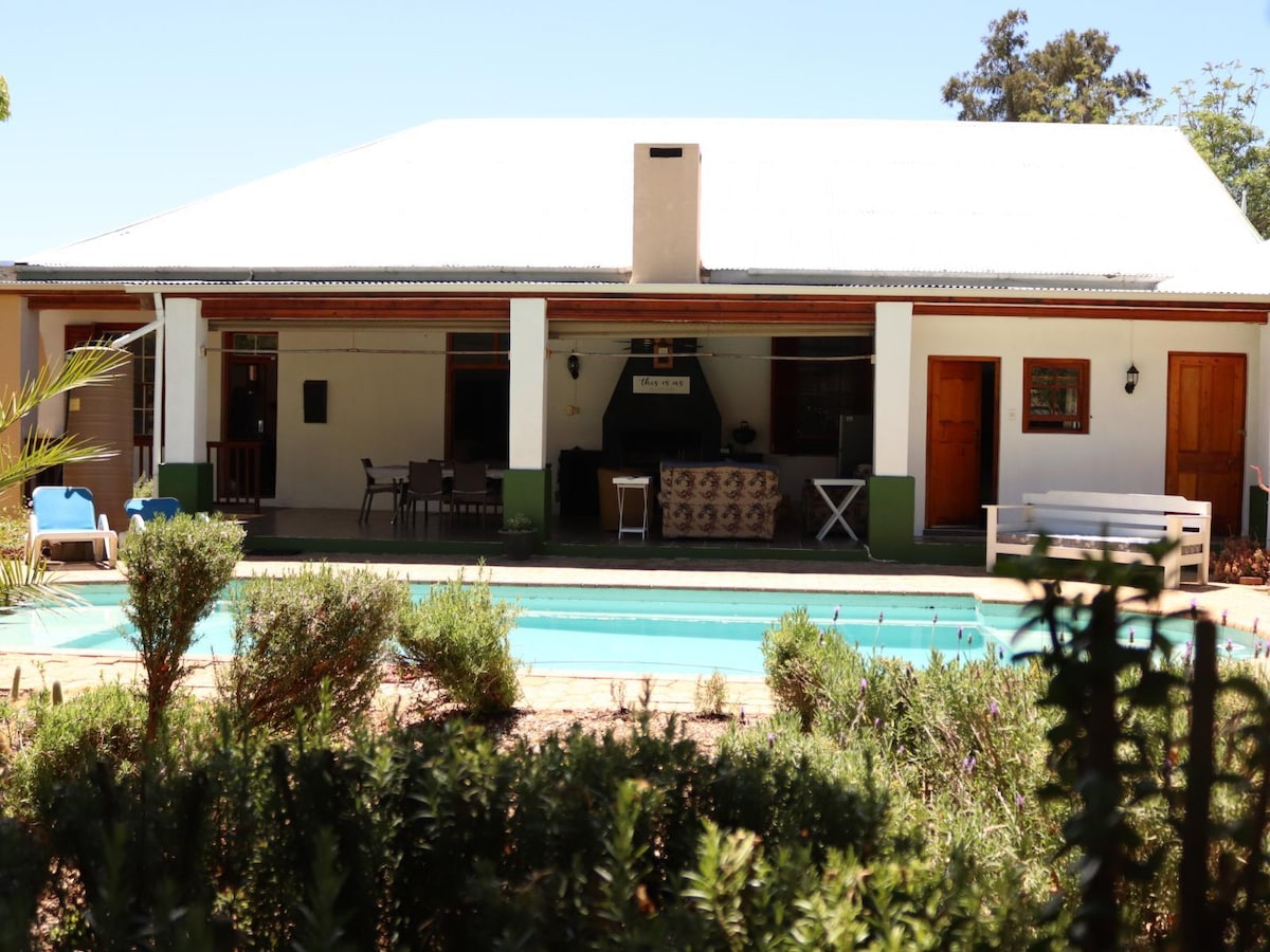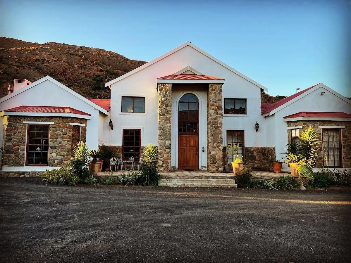 Come and experience our generous hospitality, breathtaking views, fresh farm air, clean water and natural vegetation if you want to getaway to relax in peace and quiet. We provide a sincere and peaceful farm experience in a safe environment. The farm has lovely hiking trails through the gorgeous Karoo-veld and mountain bike trails on the quiet farm roads. Guests can enjoy picnics, swim in the plunge pool/ hot tub or in the farm dam, do some fishing or just relax while listening to the birds.