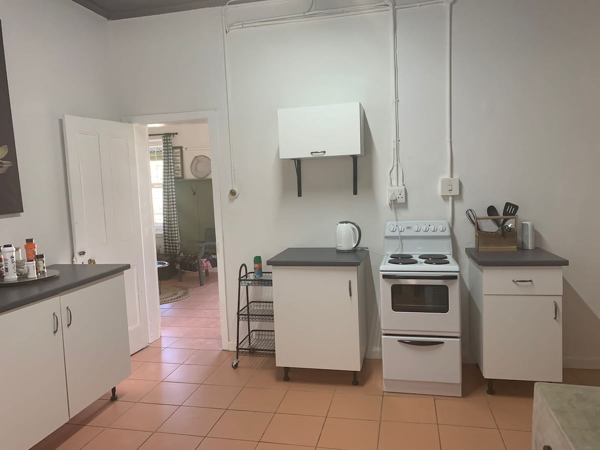 A spacious, fully equipped villa (FOR 2 ADULTS ONLY), located on a verdant, historical town farm, smack-bang in the centre of town, one street down from the buzz, and right next door to The Gables Fitness, a boutique fitness facility. Enjoy a picnic under the giant pecan trees in the olive grove, and pick your own sweet, organic grapes from the antique vineyard. Relax on the pool loungers in the shade of the fever trees. Fall asleep to the sound of the leiwater cobbling past your villa at night.