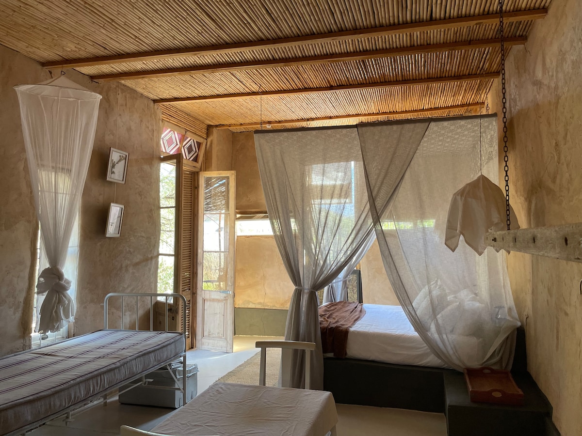 This private open-plan self catering farm cottage offers old-world charm with a stylish, minimalist touch. Designed for eco-conscious living, it runs on minimal electricity and features a fridge-freezer, water cooler, gas stove, and gas geyser. While there’s no TV, WiFi, or strong network coverage, it’s the perfect place to unwind and disconnect. With luxury linen and cozy details throughout, the cottage offers a peaceful, comfortable escape—your ideal home away from home on the farm.