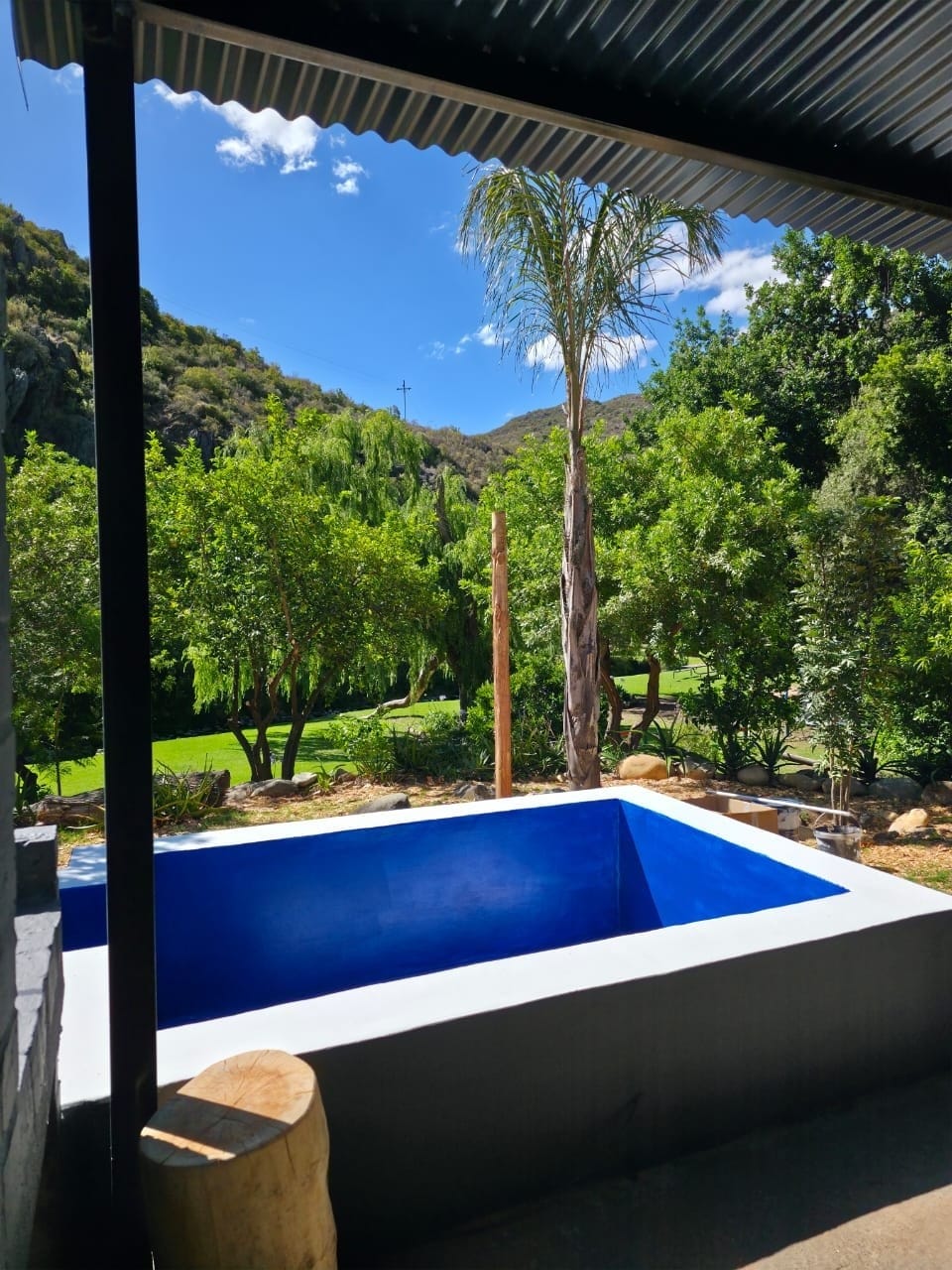 Numbi Valley is a wonderful example of off-grid sustainable living. There is one private guest cottage on the farm and Kath and Ross welcome you to enjoy their uniquely created space. There are abundant organic gardens, a spring fed fresh water plunge pool with amazing views, all in a very beautiful and peaceful valley in the klein karoo countryside. There are scenic walks, cycling routes, fresh produce , excellent massage, delicious pizza, stargazing and wi-fi. We would love to have you stay!