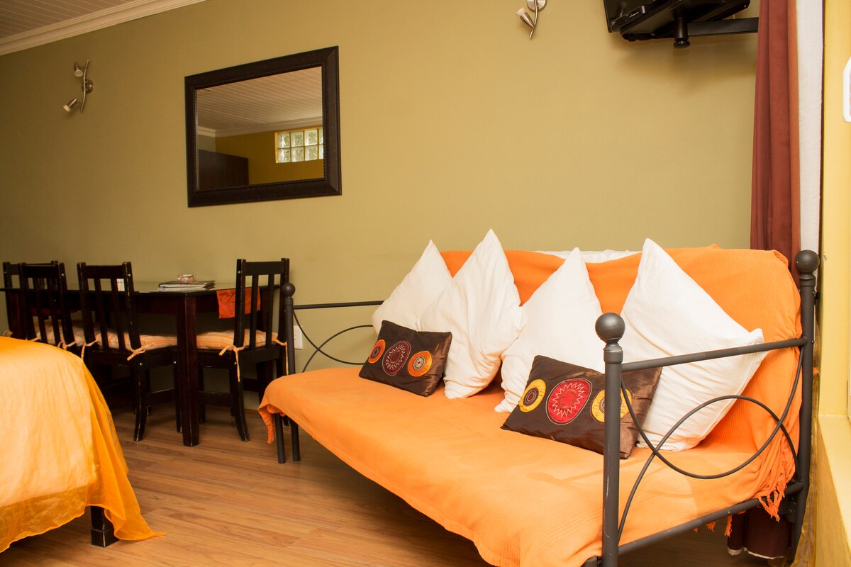 Mitat means Gift from God and offers 2 units which accommodates 6 guests. Room 1 sleeps 2 guests and Unit 2 sleeps 4 guests. Each Unit offers its own private entrance. Room 1 offers a sliding door leading onto a covered deck with safety doors, a table, chairs and sink. The Unit offers a queen size bed, en-suite shower (wet room) and separate toilet. Linen/towels are provided as well as coffee/tea/air-conditioning/fan/smart TV/streaming facilities (Netflix)/free Wifi/safe parking.