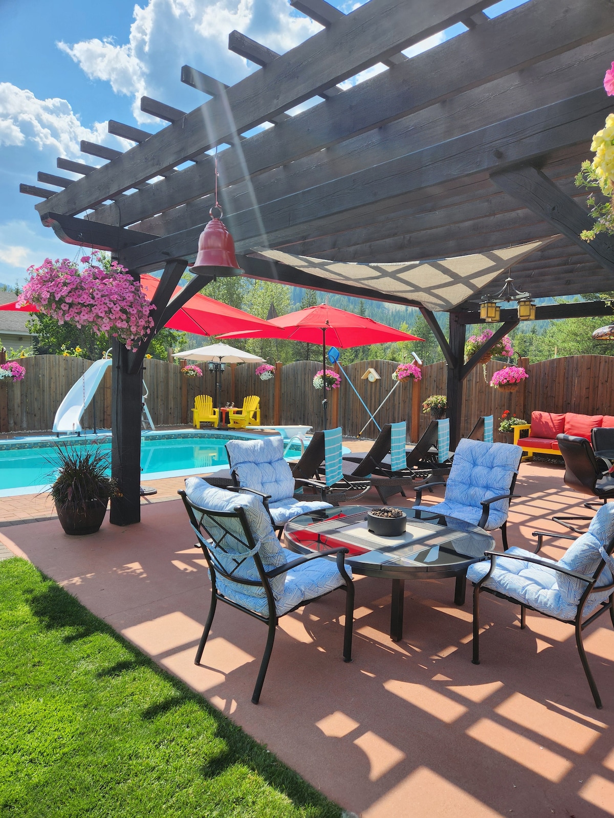 Welcome honoured guests, to Villa Britton, the fun, unique, comfortable art installation BNB in the heart of the west kootenay’s. Enjoy multiple Private covered patios, super interesting interactive mini golf course, ghost town, 12’ by 20’climbing wall with 30 degree overhang, disc golf,nice fire pits year round on a resort like property. Large kitchen & dining area, private bathroom and comfy bedrooms. Located in quiet area near Castlegar, walking distance to amazing parks, Fishing & much more.