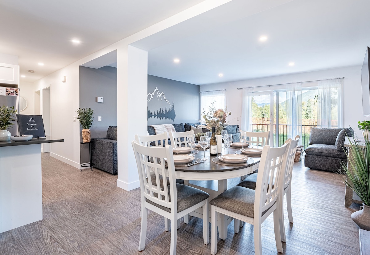 Welcome to Begbie Retreat — a design-forward 2BR suite just 3 min from Revelstoke Mountain Resort. Nestled in a quiet, tree-lined neighbourhood, this stylish space blends mid-century warmth with cozy mountain textures. You'll find a full kitchen, fireplace, and heated gear shed for skis or bikes. 1 min from Mackenzie Plaza and 7 min from downtown, it’s the perfect base for year-round adventure.