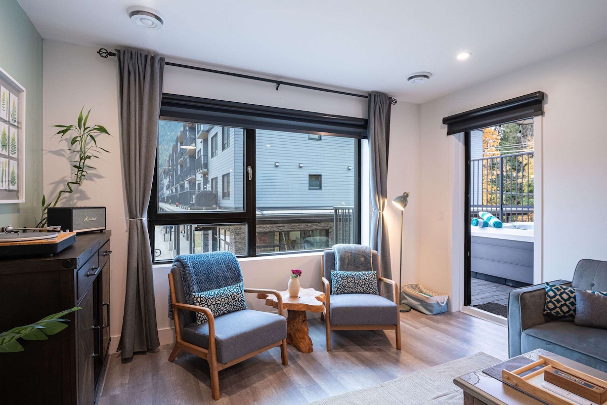 时尚的2卧/2卫,靠近温泉和滑雪山