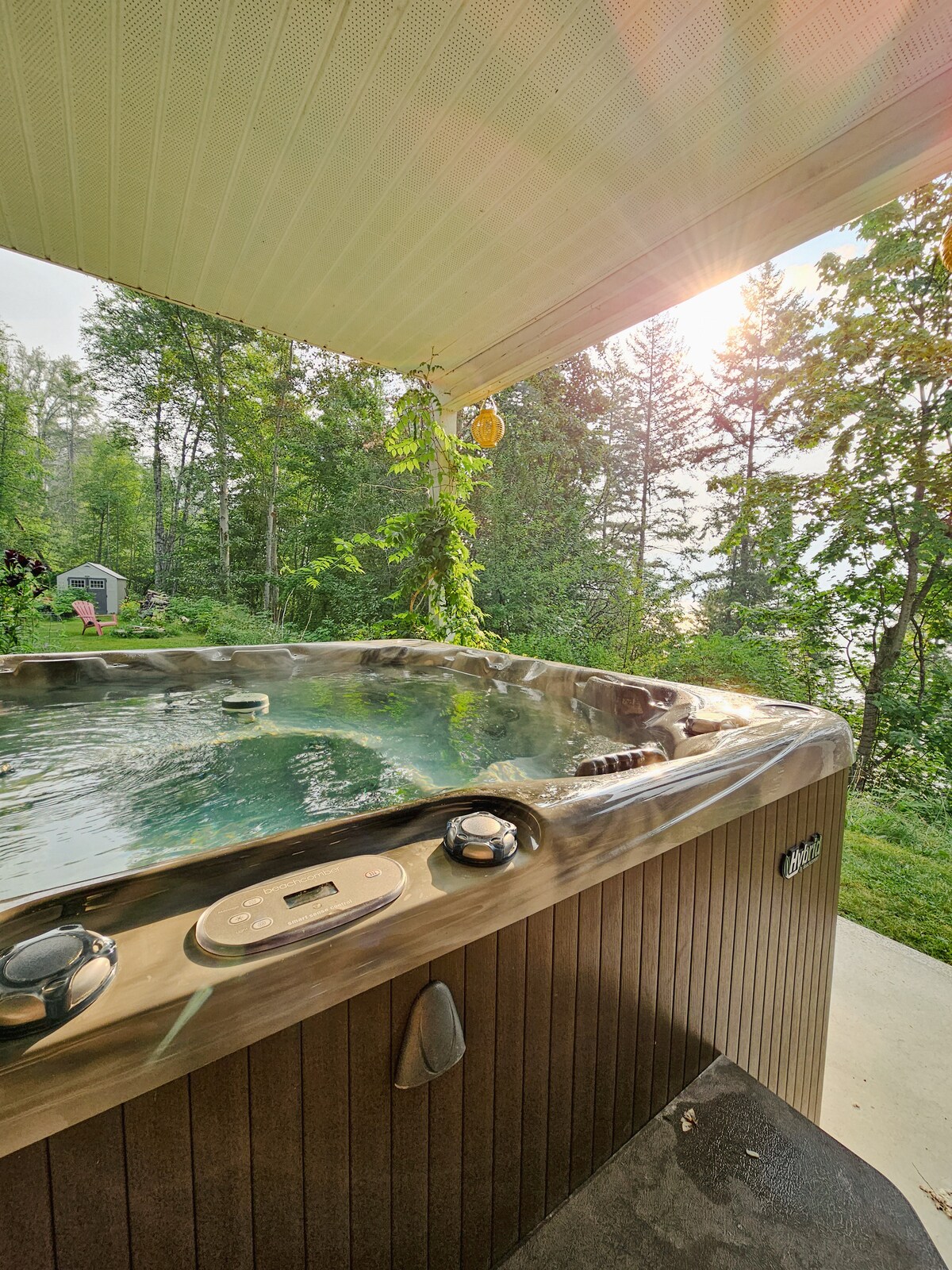 The Treehouse in bonnington Falls is a stylish & cozy getaway and home base for your outdoor adventures 15 minutes away from Nelson. Enjoy a relaxing night next to the fire and cooking or barbecuing in a fully equipped kitchen. Settle in for a peaceful night sleep in the master king bed or guest queen bed. Take in the exceptional views of the surrounding mountains and treetops while relaxing in the jacuzzi spa hot tub on the rooftop patio.
