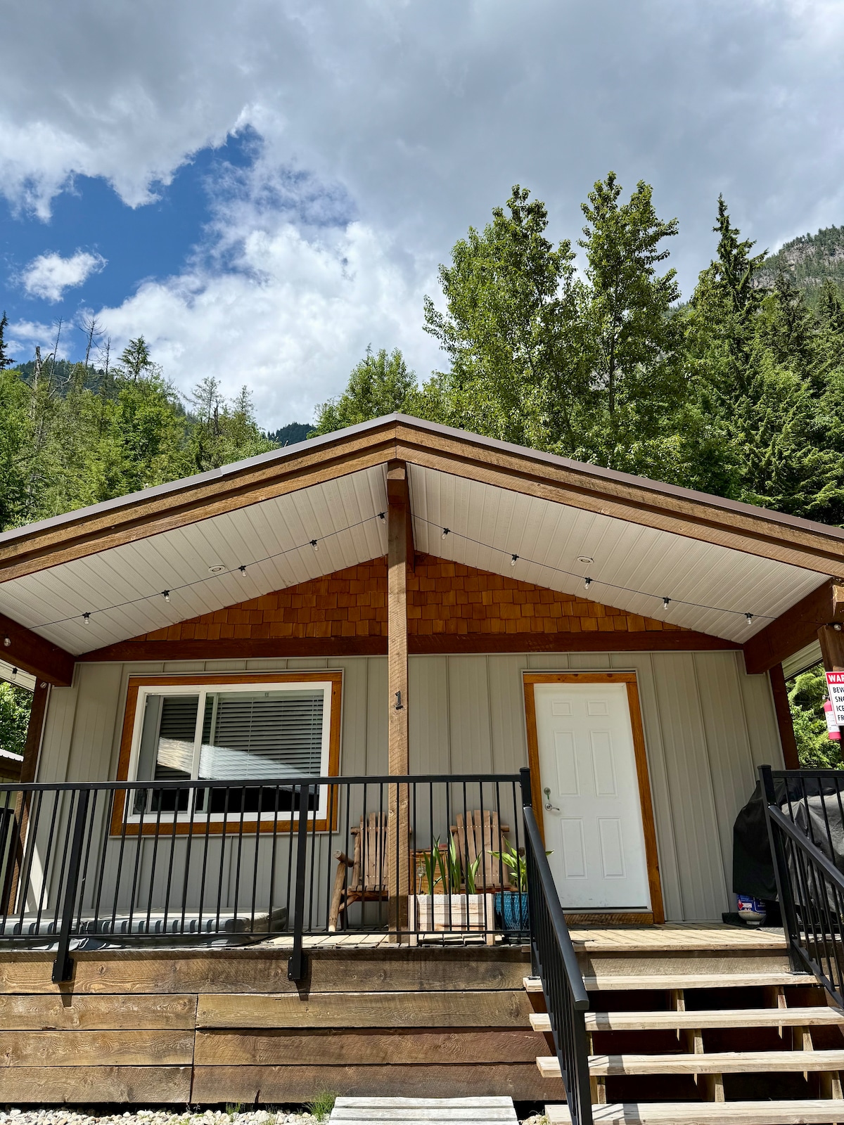 Unwind in this peaceful backyard guesthouse, just a short drive from downtown Nelson. Enjoy a private 2 person hot tub, seperate queen bedroom, fully equipped kitchen, cozy living area with fireplace and TV, and a secure storage shed for your bikes or ski gear. Level 2 EV charger is available upon request. Perfect for a quiet retreat or a base for nearby trail adventures.