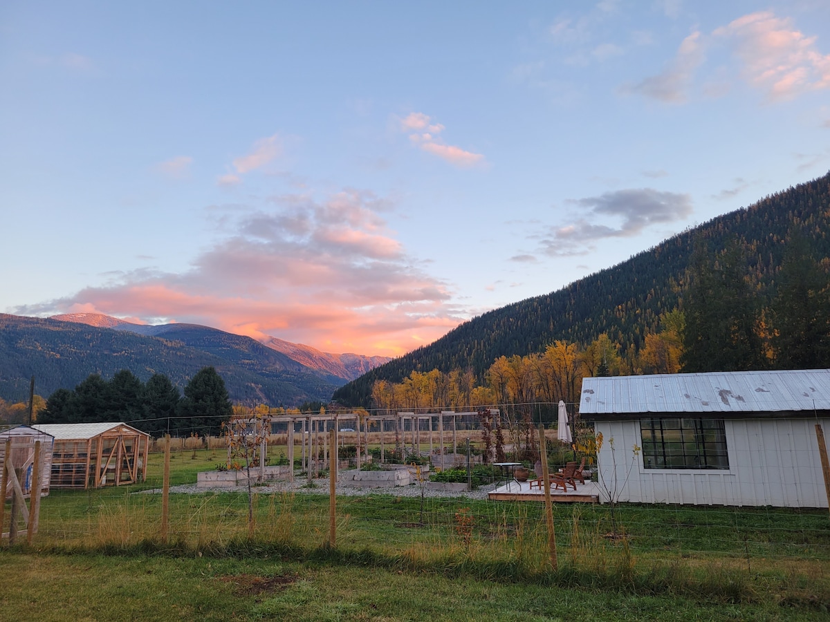 Come stay with us on our 1-acre piece of land just a few minutes East of Creston, BC. The views of the Skimmerhorn mountains are breath taking! Enjoy a coffee on your private deck or unwind by a fire next to the flower garden. The cottage is equipped with a coffee machine, hot plate, toaster and air fryer for any of your cooking needs!