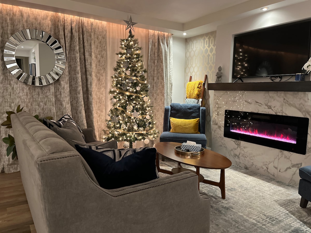 This newly built custom home has a private basement suite (800 sqft). It has 1 bedroom (King Bed), 1 den, a full bathroom and an open concept living area with a fully stocked kitchen. There is a washer/dryer as well as and a place to store skis/bikes and gear. Our guest often comment on the space as a cozy, stylish, new, super clean place to stay! This space is ideal for people wanting spend their days exploring and their evenings relaxing.