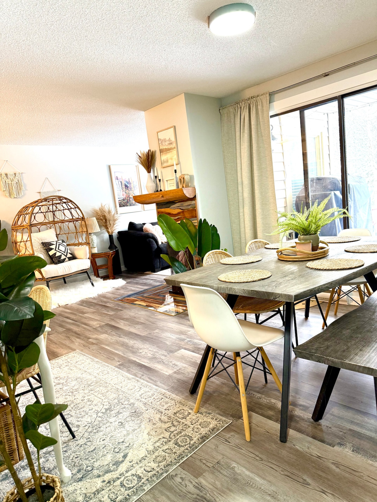 This 1 bedroom unit is located in the Panorama Upper Village. Its quiet yet very close to all amenities. Unit features large bedroom with king bed and wall closet and 37" TV Updated kitchen has stainless appliances, all cookware, dishes, silverware. Dining area has table for 6 people. Living area features 1 twin and 1 queen pull outs . There is also gas fireplace and 42" HD LCD TV. Spacious balcony offers breathtaking views of the mountains. Access to Panorama pools is included in your stay.