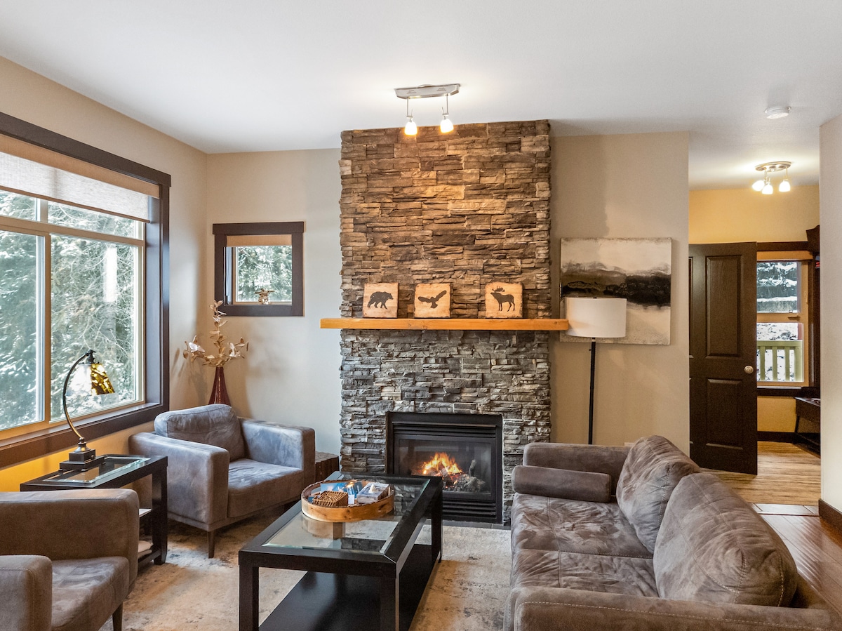 Fall in love with the Rocky Mountains in this creek side ski in ski out townhouse. Fully renovated, this beautiful Riverbend Panorama home, with a view of the mountains, is located steps away from the gondola and hiking trails along the picturesque Toby Creek. There are two separate bedrooms, each with their own full on-suite bathrooms, and a fire side queen size sofa bed (with upgraded foam mattress) in the living room to accomodate a total of six guests.