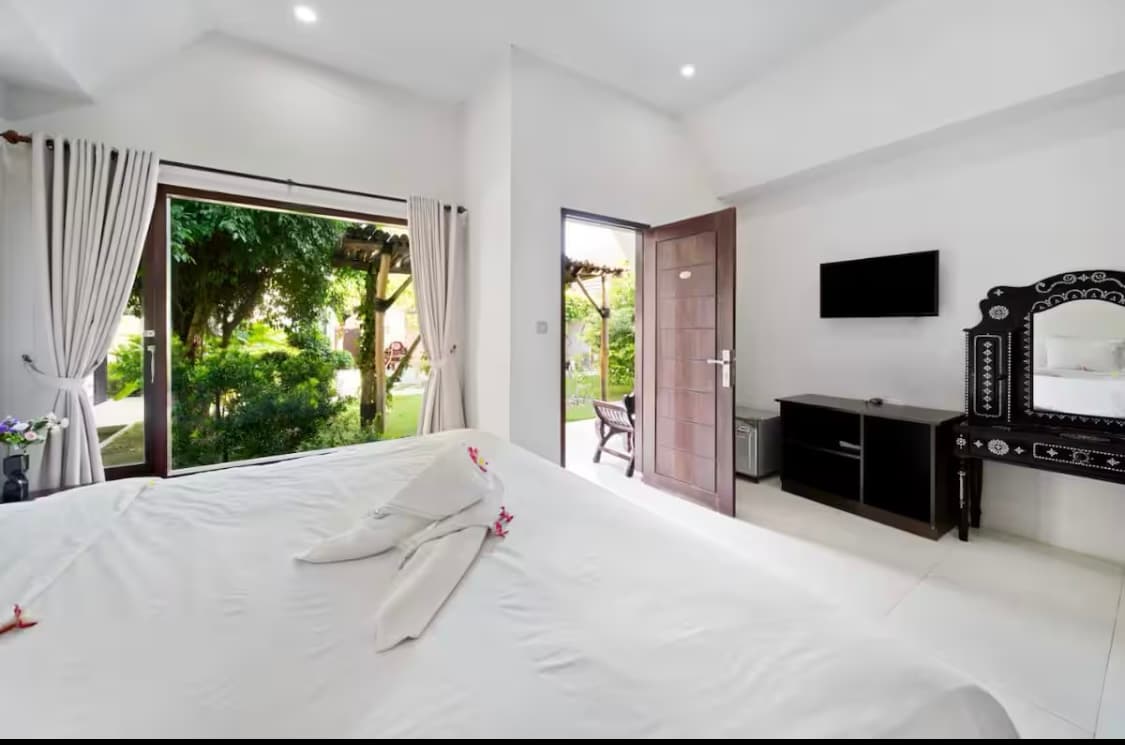 We sitting on a hillside of Kuta beach overlooking a small village facing the ocean surrounded by lush tropical gardens with a lot of wildlife like monkeys many species of birds lizards and large geckos. We are about 5 minutes from Kuta town or 15 minutes to famous Tanjung Aan beach. The best way to travel around here in Kuta is on a scooter which we have for you for. We also can do daytours or airport pick-up. 😊 No hot water 😉