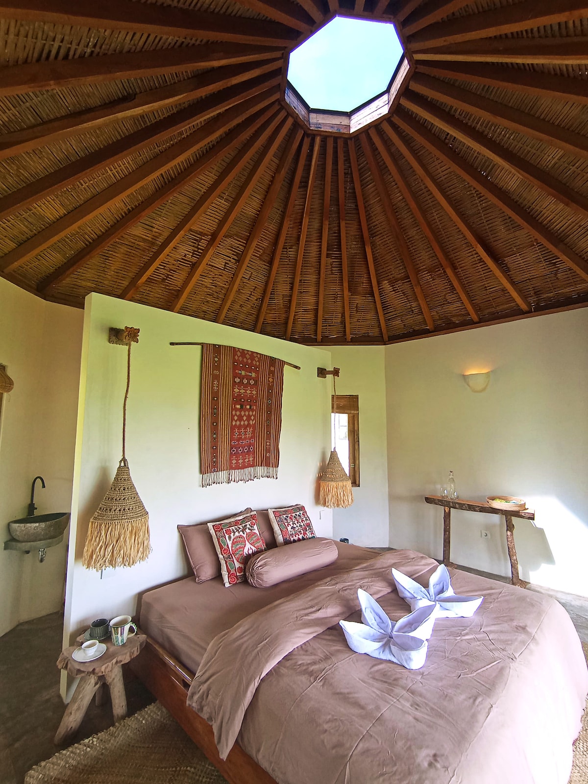 Escape to our unique guesthouse, designed to connect you with nature while keeping cosy modern comforts. Enjoy your morning coffee with breathtaking views of lush ricefields right from your bed. Relax in the garden, gather around the firepit, or enjoy a friendly game of badminton. Savour traditional local dishes, and explore the area with guided tours to waterfalls, monkey forests, and artisan villages. Your ricefield retreat in Lombok awaits—come and reconnect with nature in style.