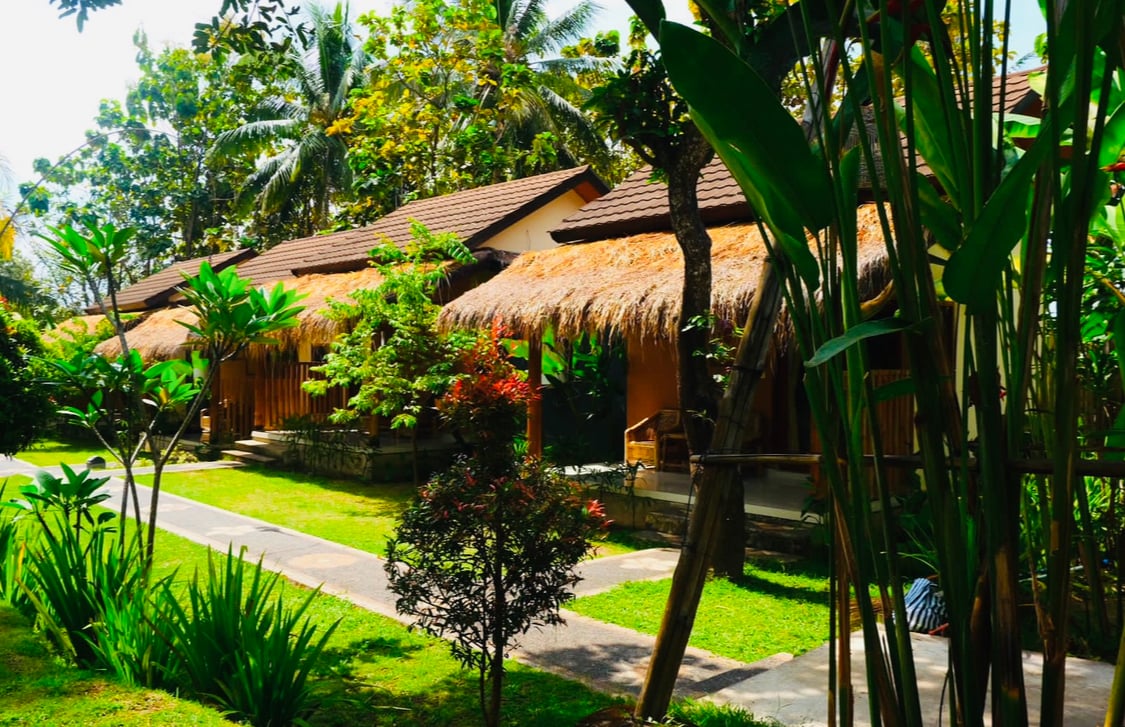 Find Jungle Inn at the end of a soil palm tree road, with a waterfall and the jungle right behind its tropical garden and ricefield. You will immediately feel the Tetebatu jungle vibes. The cabins are built by me and have panoramic views for stargazing and sunset. In the morning, we provide you with free breakfast. After a full day of activities, you can wind down in the hammock area by a fire, or chill in the bar where we play music, darts and serve cold beers. Let us make you feel at home!