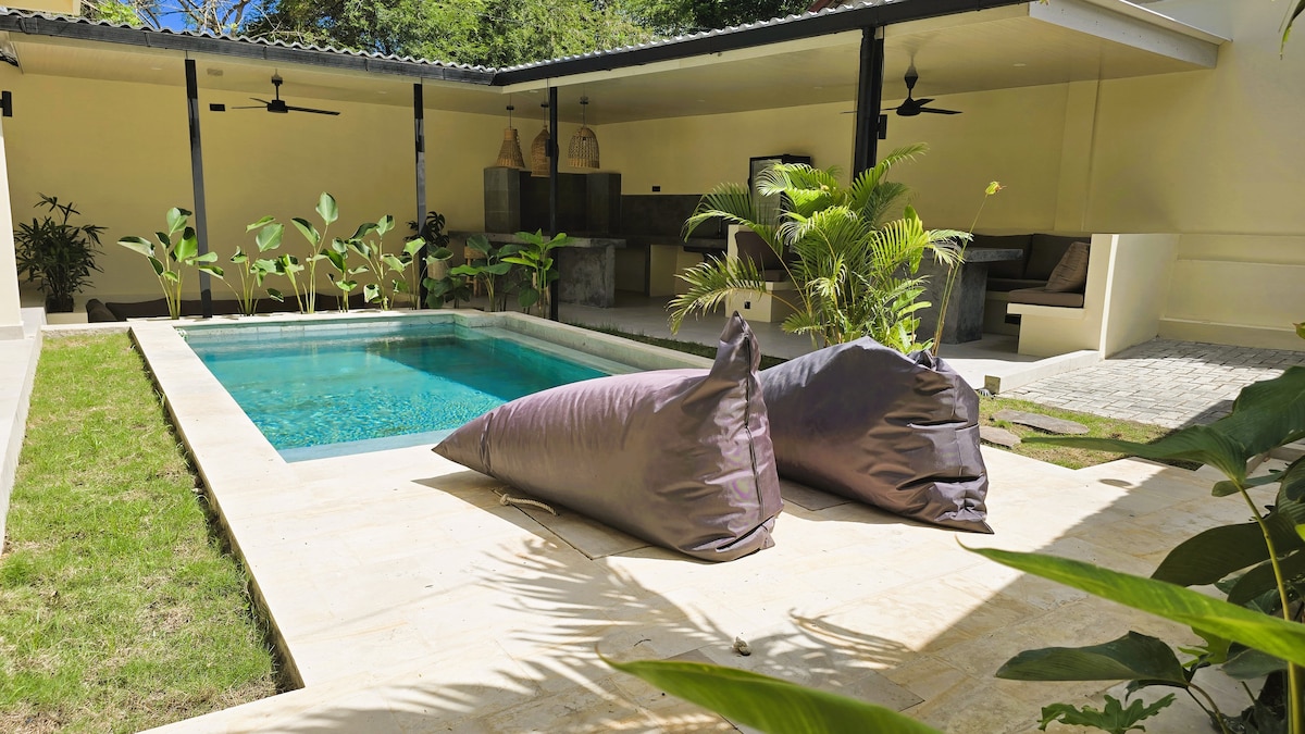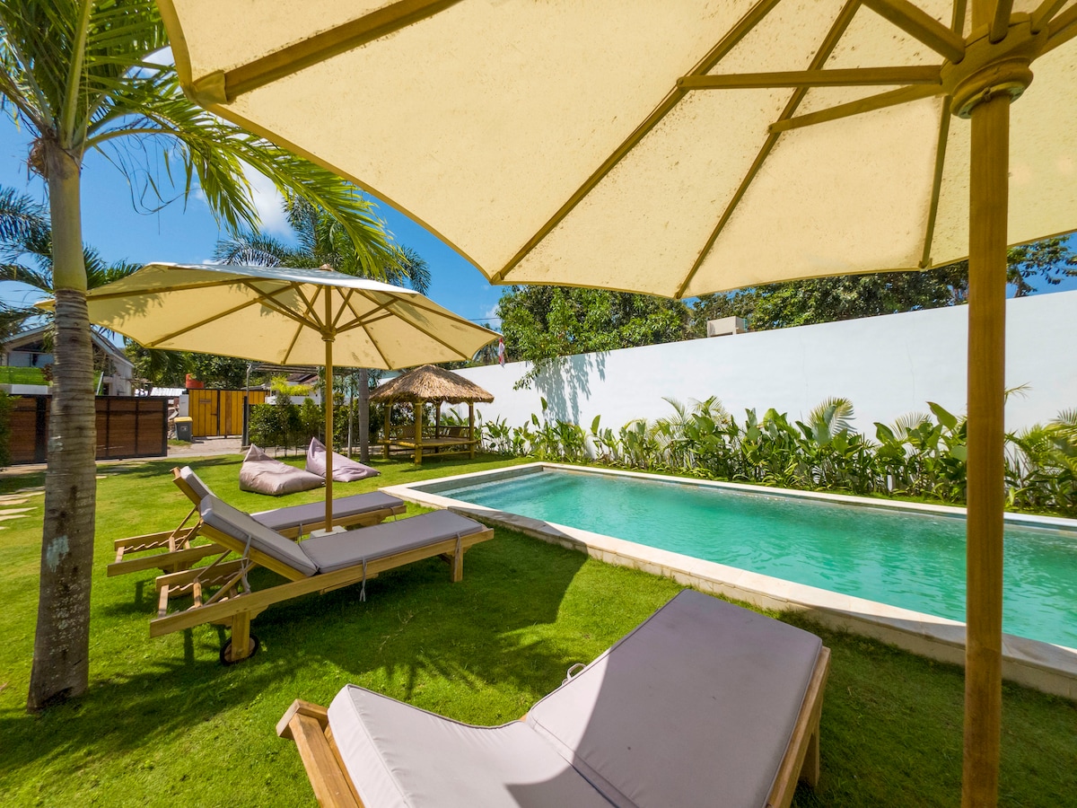 Nestled in a quiet area of Lombok, this 190m² modern villa offers style and comfort surrounded by lush tropical palms. Designed with fine finishes and delicate details, it features a refreshing private pool, outdoor lounge with sofa and bean bags, and a spacious living area. Fully equipped with high-quality amenities, including a premium coffee machine, this villa blends elegance with relaxation for an unforgettable stay.