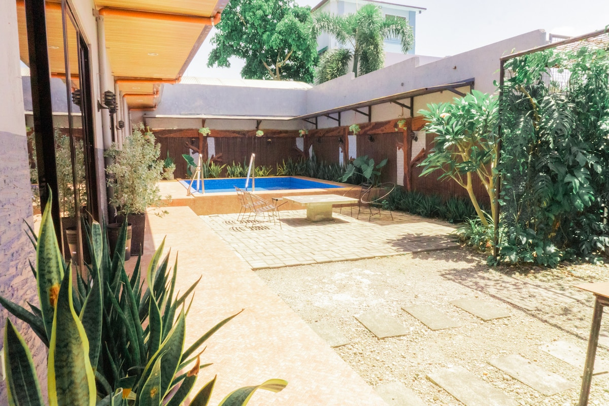 Kick back and relax in this calm, stylish space. Private Plunge Pool INCLUSIONS: 🏊♂️Adult Swimming pool (4-5ft), 15 sq mtr 🛜WiFi Zone ❄️2 air-conditioned rooms (max 4 pax per room) total of 8 pax ❄️1 air-conditioned entertainment room with 🎤Platinum Karaoke Piano XL SD WI 21,000++ songs 🎬Unlimited Netflix 🎲Board games 🧊Fridge ☕️🧊Water Dispenser 🍽️ Kitchenwares and utensils ♨️ Microwave Oven and Oven Toaster ⏲️ Induction stove 🍚 Rice cooker 🎯Dart 🅿️Parking spaces 🍖Grill (Charcoal not provided)