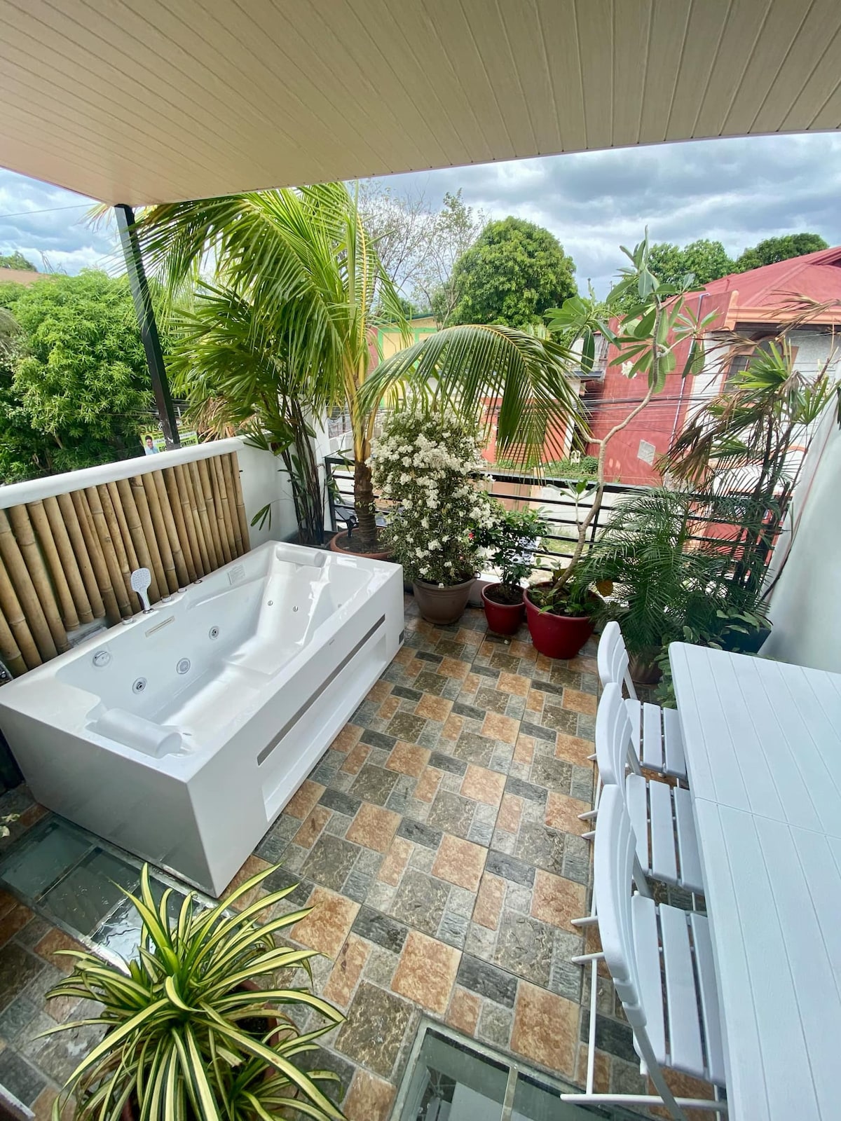 With several cozy nooks for reading, writing, or working, Umi Nest is designed for relaxation and creativity with a patio, bathtub, barbecue grill & dining area. 30 square meters, 45 mins from Clark Airport, 15 mins from the beaches and 5 mins from Royal Duty Free. NOTABLE FEATURES: >Comfy beds >Outdoor Bathtub >Hot shower >Backyard for Pets >WiFi >BBQ grill >Outdoor dining >Hammock >Full kitchenette >Gated village >24hr security >AC >Pet friendly with a fee >Extra fees after first 2 g