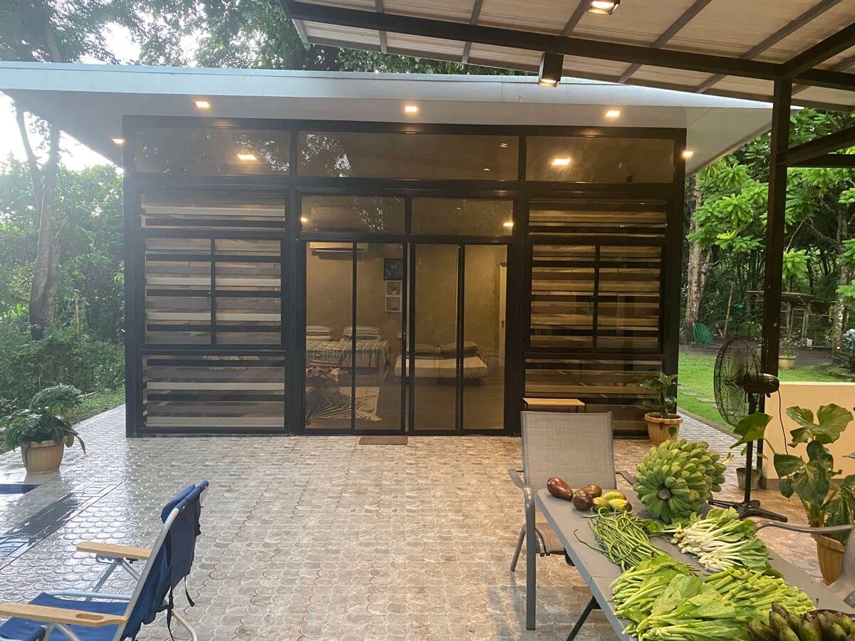 The Casita is nestled around a man-made lake with a pool right in front. It has a veranda at the rear where you can cook and dine by the lake. You can also go fishing for free. Around the Casita is home to some wild birds flying and tweeting around. And if you're lucky you may chance upon seeing fireflies in the night. With its vast area it is free to walk around and enjoy a bit of farm living.