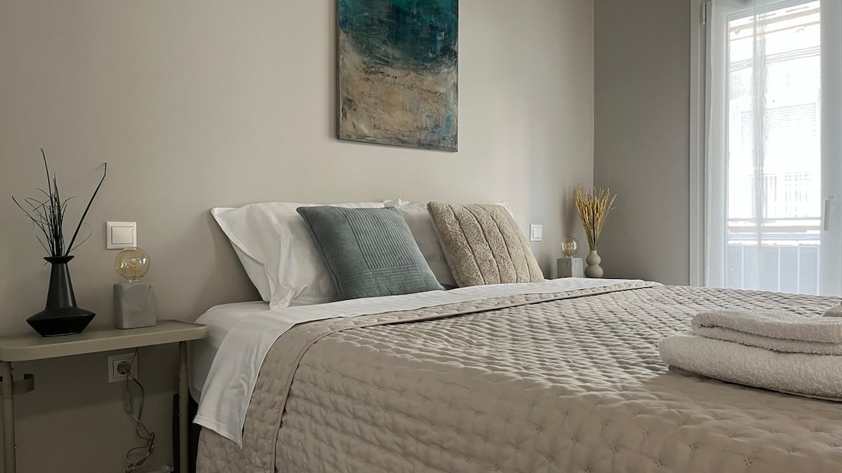 A beautiful and bright 50sqm apartment in the heart of Thessaloniki at 8 minutes walk from Aristotelous square, overlooking Ladadika square. 2 aircondition units, one in bedroom and one in living room A big veranda to take your coffee, wifi, light-filled living room, a cosy bedroom with high cotton quality bedding, 1 full bathroom, a kitchen loaded with amenities, and unique furniture make this apartment your perfect home away from home.