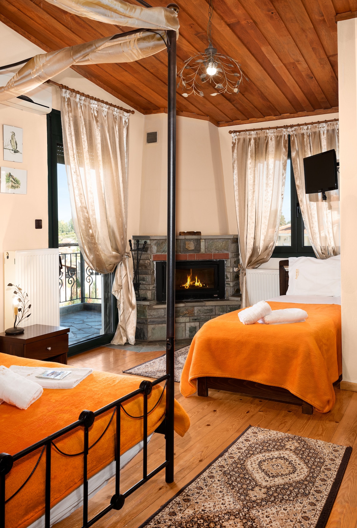 You will love the elegant deco of this cozy place. Spacious air-conditioned room at a cute B&B, decorated in Greek traditional colors. The room is equipped with a comfortable armchair, and a white traditional fireplace. There is an ensuite spacious bathroom with a shower and complementary toiletries. The room has direct access to the garden and the indoor lounge area of the B&B. It comes with a double bed or twin beds based on the guest preferences. Home made traditional breakfast is included!