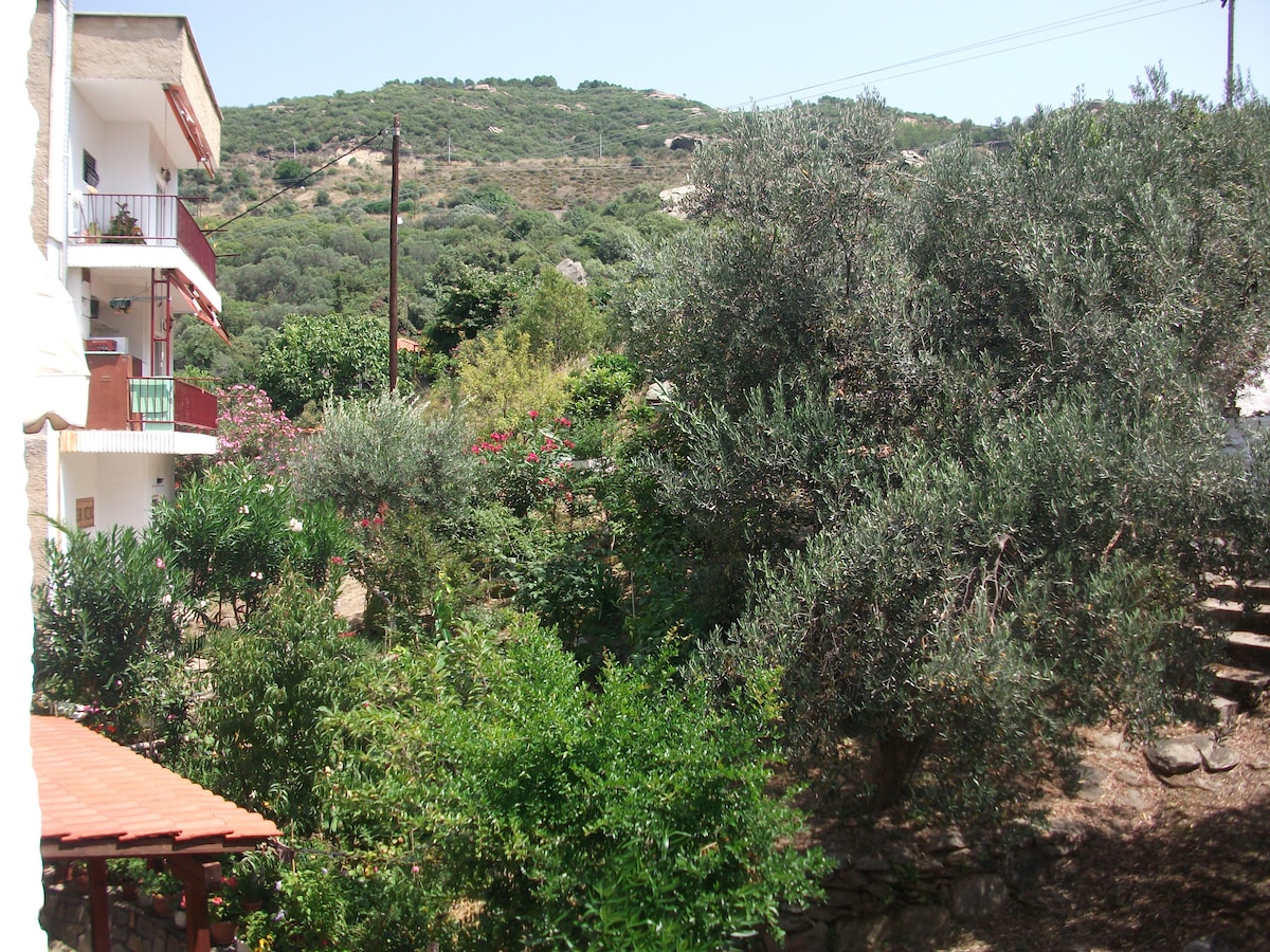 The studio is located in the ground floor of a 90's mansion, just steps from the sea. Crystal clear waters opposite of mount Olympus visible in the morning, secluded beach with gravelly shore, big, newly refurbished pool with beautiful garden around it, flat 40"tv, wifi, amazing walk in the woods which ends in the sea, barbequing by the pool are the least a guest can experience. You can discover nature at its best in the 2000m2 common garden which extends to the Mediterranean pine forest.